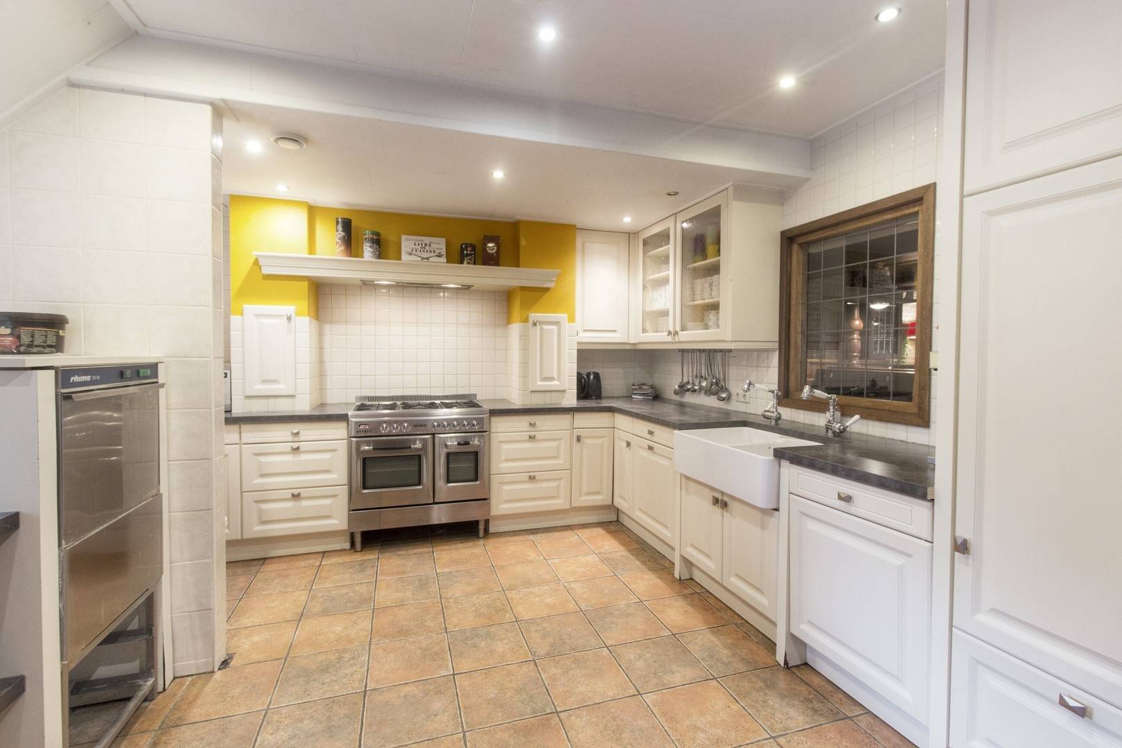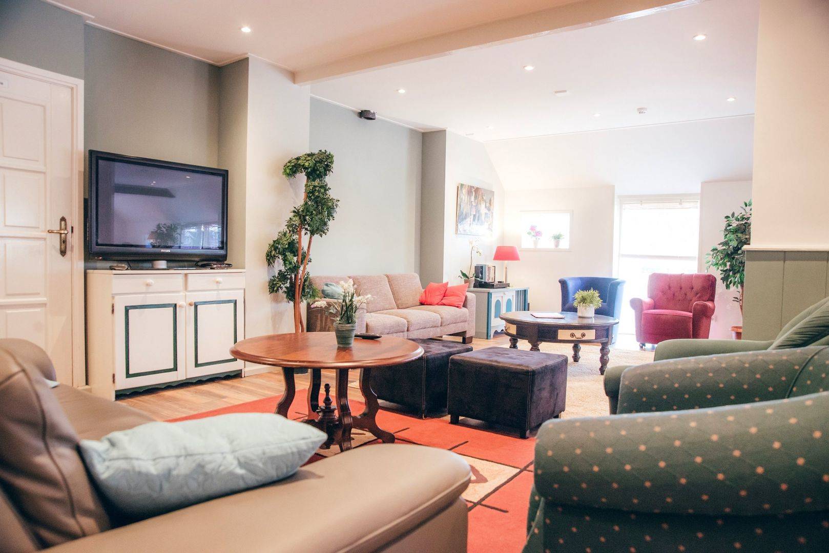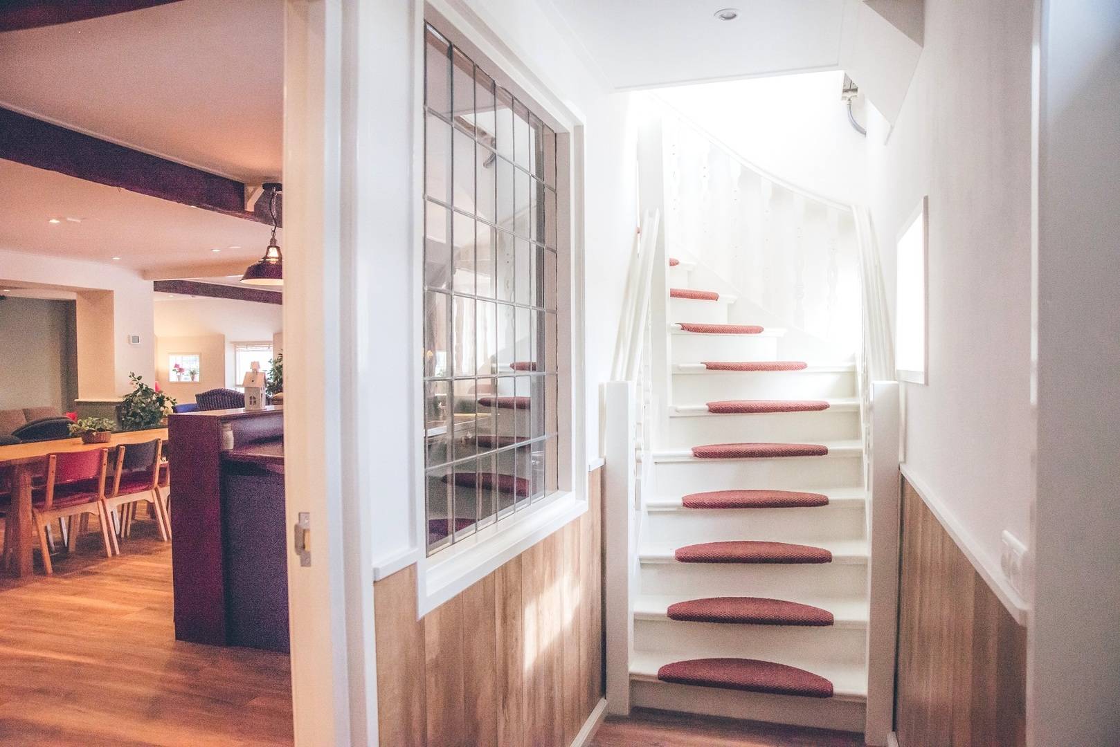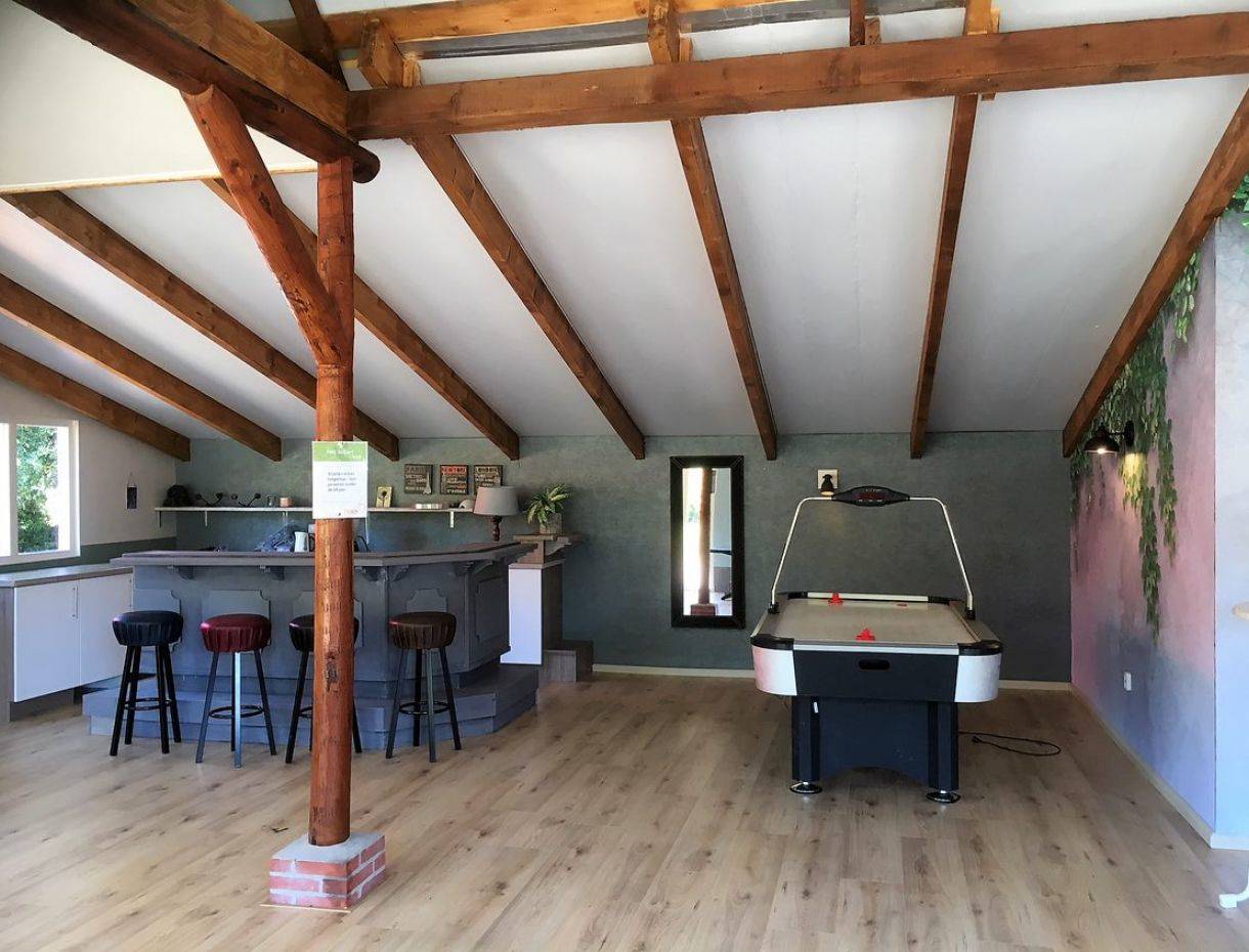 Die Gruppenunterkunft in Norg für 34 Personen hat ein sehr geräumige Wohnzimmer mit (Gas-)Kamin. Diese Unterkunft lädt zum gemütlichen Verweilen ein. Zur Entspannung stehen im Haus Sjoelbakken (niederländisches Brettspiel), Bücher und Gesellschaftsspiele zur Verfügung. Die Doppelküche bietet alle notwendigen Küchenutensilien, darunter eine Kombimikrowelle, eine Tiefkühltruhe, eine Geschirrspülmaschine, einen Ofen, eine Waschmaschine sowie einen großen Kühlschrank.