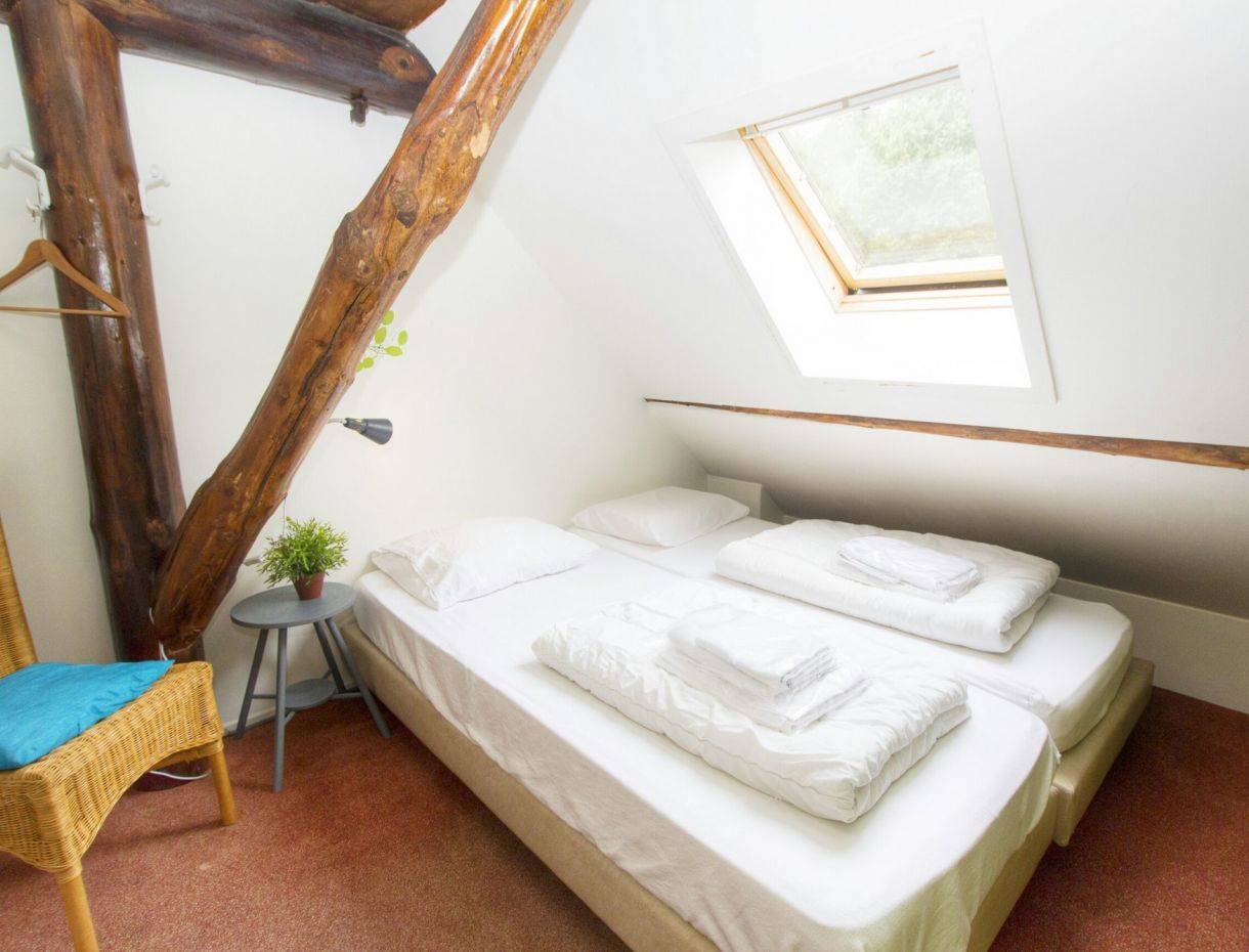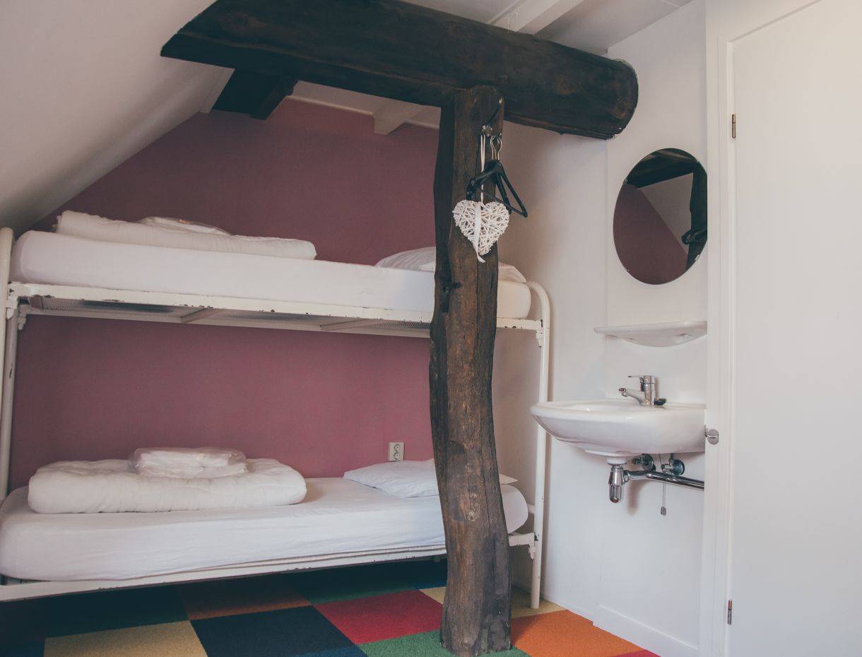 Im hinteren Teil der Gruppenunterkunft befinden sich die 10 Schlafzimmer. Eines der Zimmer ist mit einem traditionellen Alkoven ausgestattet.