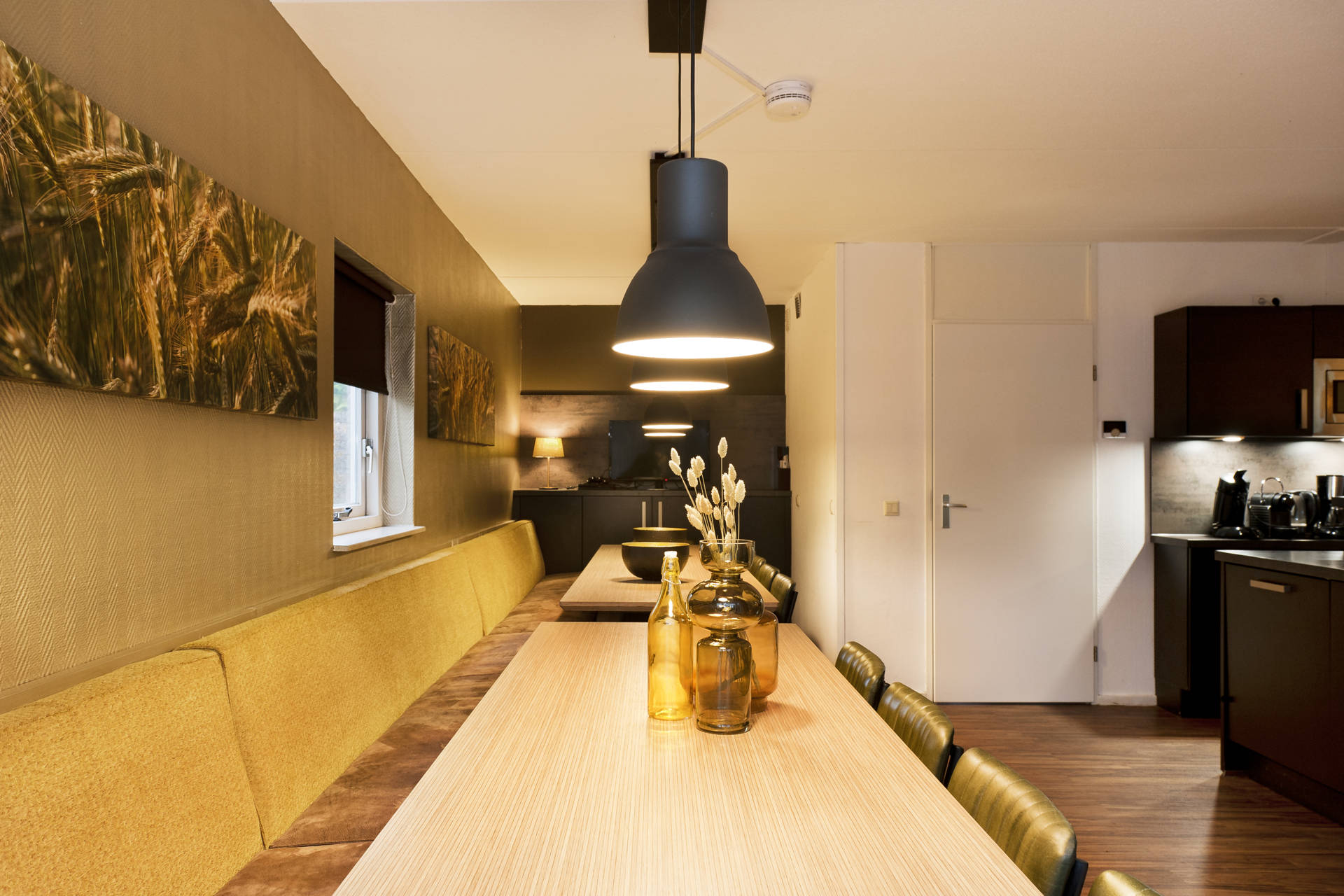 Gemütliche und vollständig eingerichtete Wohnküche mit komfortabler Sitzecker, grosser HD TV mit Blueray DVD-Spieler, Mediaset mit Ipod-Station und Playstation. Kochinsel mit 2 Geschirrspülmaschinen, Ofen, grossem Induktionsherd, Kühlschrank, Mikrowelle und Kaffeemaschine, sowie einer Nespresso und Senseomaschine. Weitere Apparate wie Stabmixer, Toaster,Tosti- und Waffeleisen und Zitronenpresse finden Sie in der Küche. Es gibt zwei grosse Esstische, Geschirrschrank sowie einen extra Fernseher. Die doppelseitigen Gartentüren führen auf die Terrasse. Es gibt eine gemütliche Alkove für 2 Personen, 2x Drei-Personen-Zimmer mit je 2 Boxspringbetten und einem Hochbett. Zwei Badezimmer mit Bad/Dusche und Waschbecken und zwei separate Toiletten.