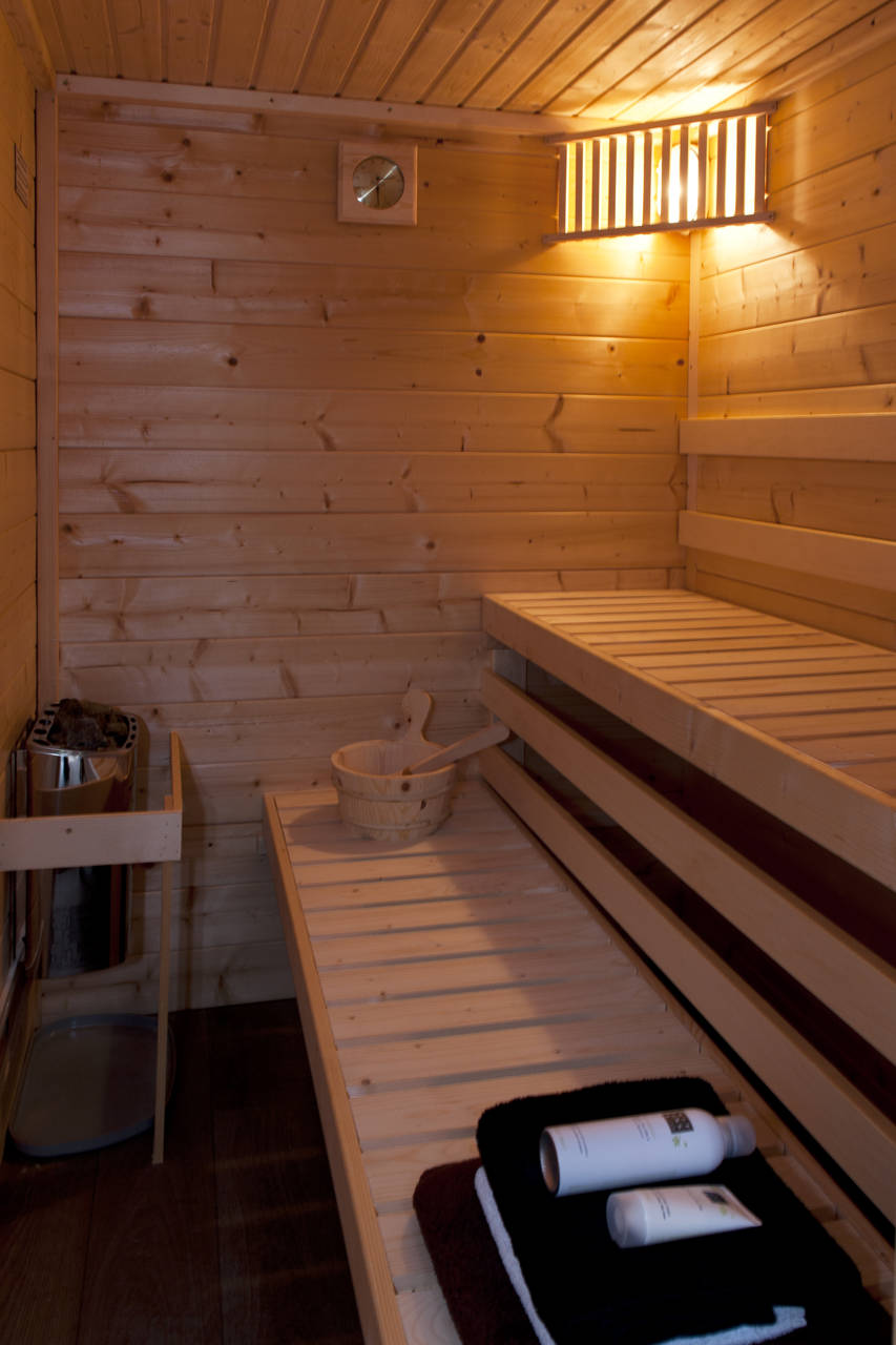Ihr persönliches Wellnesszentrum befindet sich direkt in Ihrem Garten mit einem Jacuzzi für 5 Personen, finnischer Sauna mit Lichttheraphie und Infrarotstrahler.