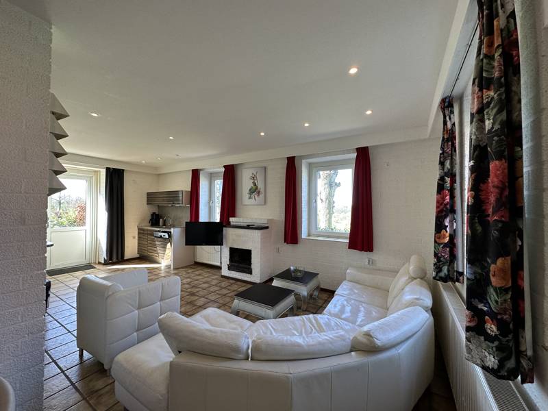 Geräumiges Wohnzimmer mit offener Küche. Die Küche ist mit Geschirrspüler, Mikrowelle und/oder Backofen, Kühl-/Gefrierkombination und Kaffeemaschine und/oder Senso ausgestattet. Es gibt insgesamt drei Sieben-Personen-Häuser. Zwei Häuser haben 4 Schlafzimmer und ein Haus mit 3 Schlafzimmern. Ein Badezimmer ist im Erdgeschoss standardmäßig vorhanden. Das Badezimmer hat eine Dusche, Waschbecken und Toilette. Die Häuser verfügen über eine eigene Terrasse mit Gartenmöbeln.