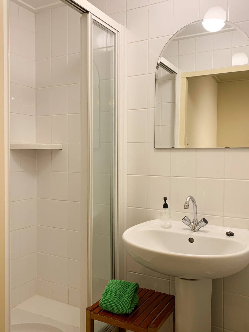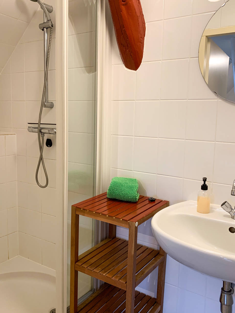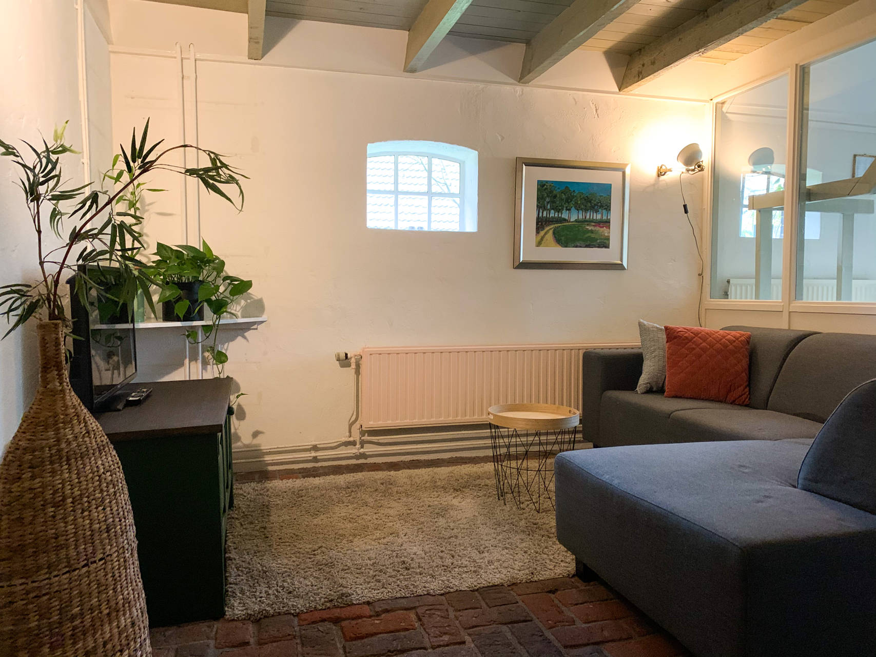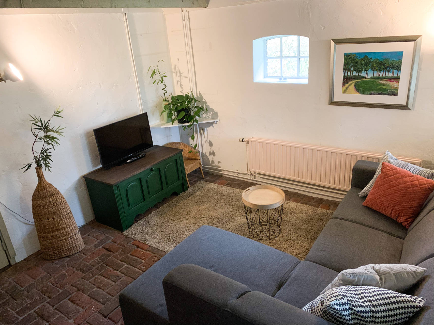 Neben dem zentralen Raum befindet sich der Fernsehraum mit Chromecast. Hier können Sie in Abgeschiedenheit fernsehen oder ein Buch lesen. In der grünen Box befinden sich Spiele.