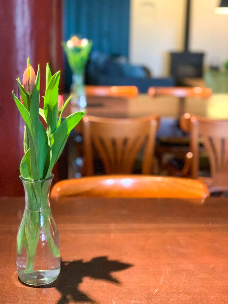 Das Erdgeschoss ist in mehrere Bereiche unterteilt. Der zentrale Raum verfügt über einen Ess-/Sitzbereich und eine geräumige Sitzecke mit Holzofen. Das Klavier und die Musikanlage befinden sich ebenfalls in diesem Raum. Dort finden Sie auch Bücher und Informationen über die Umgebung (Wander-/Radwege usw.).
