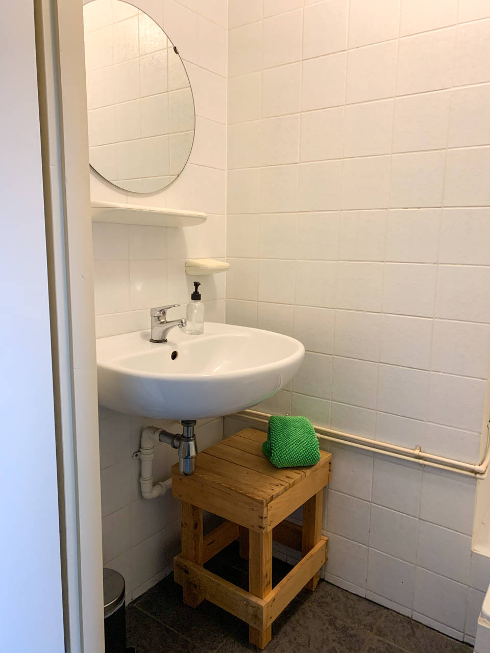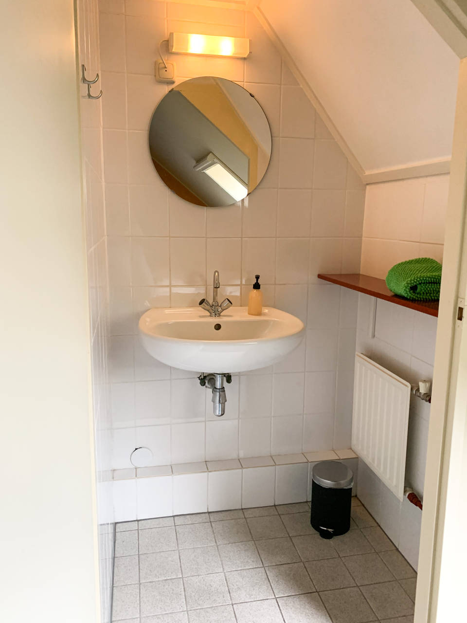 Zwischen der Küche und dem Fernsehraum befinden sich zwei Toiletten, ein Putzschrank, das Erste-Hilfe-Set sowie Informationen und Karten der Umgebung von Drenthe.