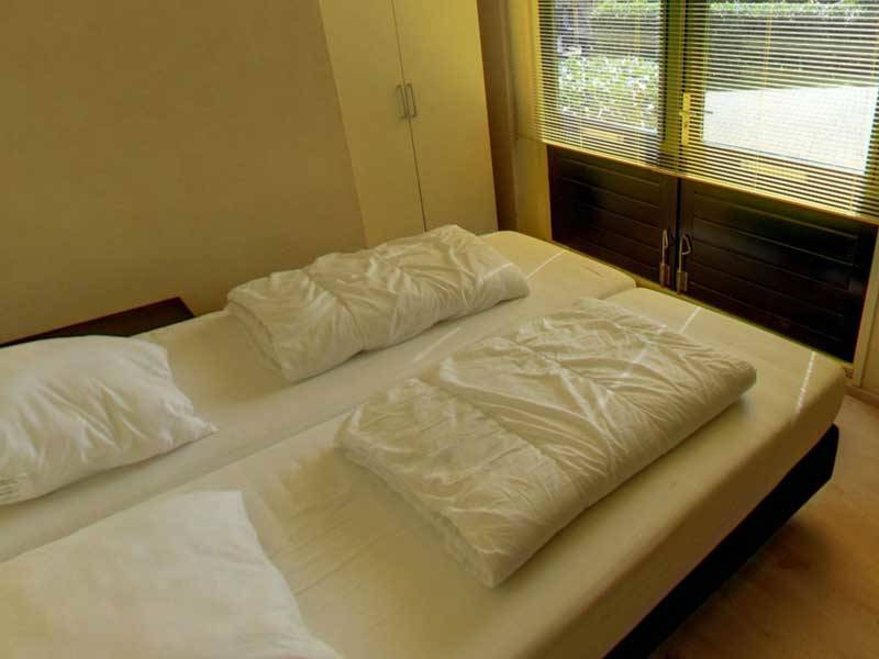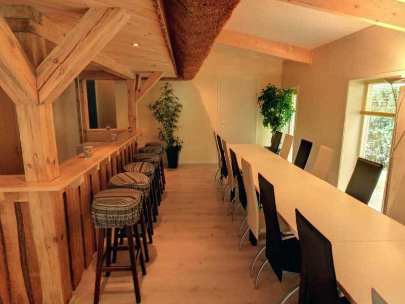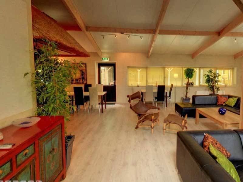 Diese Unterkunft verfügt über eine voll ausgestattete Küche zur Selbstverpflegung. Im Wohn- / Esszimmer gibt es eine große Lounge-Ecke mit einem digitalen Beamer zum Fernsehen oder für Präsentationen. Der Essbereich verfügt über viele Tische und Stühle. Die Unterkunft hat auch eine eigene Bar. Im Erdgeschoss gibt es fünf Schlafzimmer mit eigenen Badezimmern. Es gibt ein weiteres Zimmer im zweiten Stock mit vier Einzelbetten und einem Gemeinschaftsbad auf dem Flur. Während der Sommersaison können auch die sanitären Anlagen auf dem Campingplatz genutzt werden. Alle Betten sind mit Bettdecken und Kissen ausgestattet. Zentralheizung im gesamten Gebäude. Auf der Terrasse stehen Tische und Stühle und auf dem Campingplatz gibt es verschiedene Sportplätze für Fußball und Volleyball. Es gibt auch eine Cafeteria, einen Aufenthaltsraum, Trampoline sowie ein (beheiztes) Hallenbad und 2 Kinderbecken (geöffnet vom 1. April bis 31. Oktober). Wenn Sie Frühstücks-, Mittags- oder Abendbuffet bestellen, erhalten Sie einen Rabatt von 10%. Dieses wird für Sie in der Cafeteria serviert.