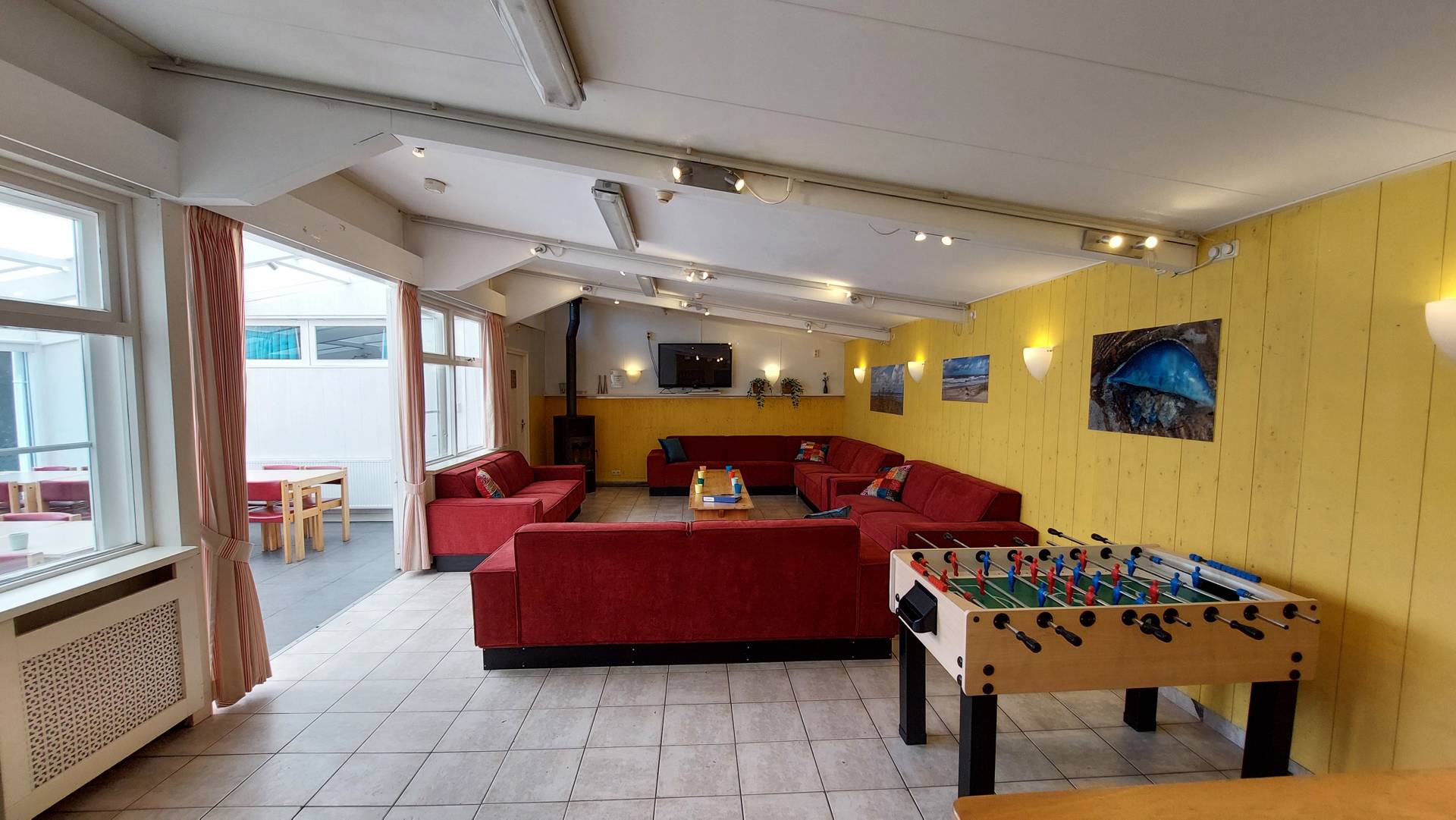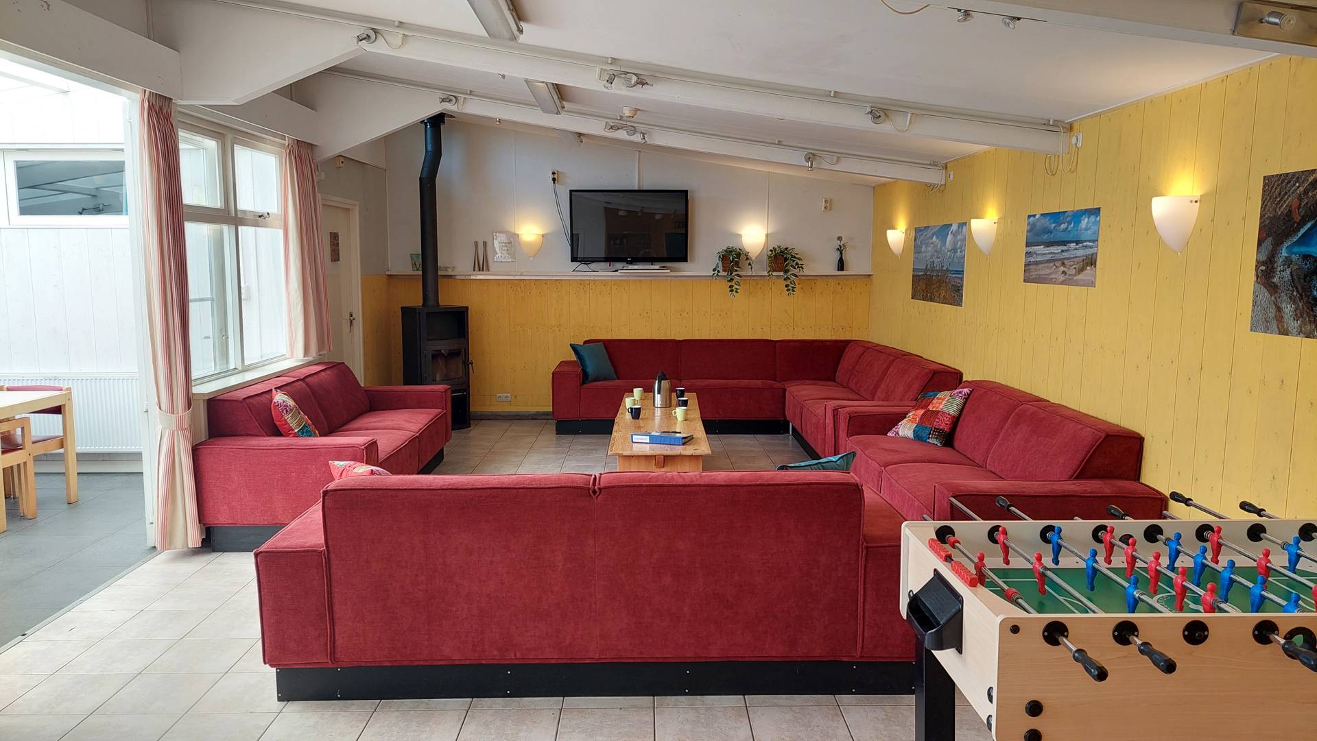 Der Ferienhof hat sechs Schlafzimmer, die mit Etagenbetten und Waschbecken ausgestattet sind. Die Sanitäranlagen bestehen aus vier Duschen, drei Toiletten und einem Urinal. Die Küche ist professionell eingerichtet. Der Aufenthaltsraum mit Sitzbereich hat eine Bar sowie einen Holzofen und eine zusätzliche Sitzgruppe im Wintergarten. Normalerweise sind ein Kinderbett und ein Hochstuhl vorhanden. Zusätzliche Kindermöbel können Sie jedoch anfragen. Sie können Ihren eigenen Schlafsack oder eigenes Bettzeug und Bettwäsche mitbringen oder diese mieten. Draußen gibt es eine große Terrasse mit Picknicktischen sowie einem sehr großen, geschütztem Spielfeld mit Feldhockeytoren und -schlägern, Tischtennis und Schaukeln. Kostenloses WLAN. Fahrräder können nach Reservierung gemietet werden.
