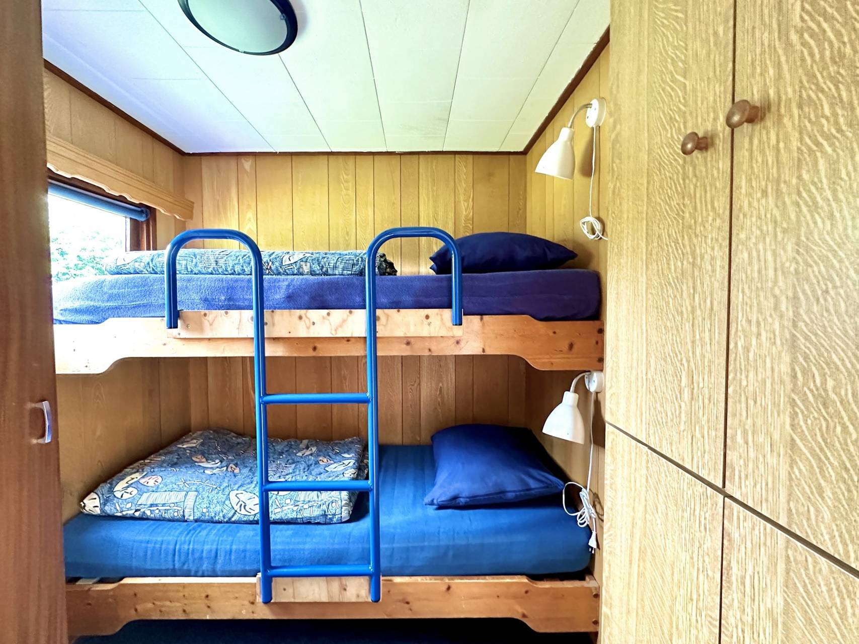 Das Gebäude verfügt über 3 Schlafräume (1 x 4 mit 2 Etagenbetten, 2 x 2, mit Waschbecken). In einem Wohnanhänger gibt es weitere 2 Schlafräume (1 x 2 mit Doppelbett, 1 x 2 mit Etagenbett). Es gibt 2 WCs und 2 Waschräume mit Dusche und Waschbecken. Der Wohnanhänger hat ebenfalls ein Bad mit Dusche, Toilette und Waschbecken.