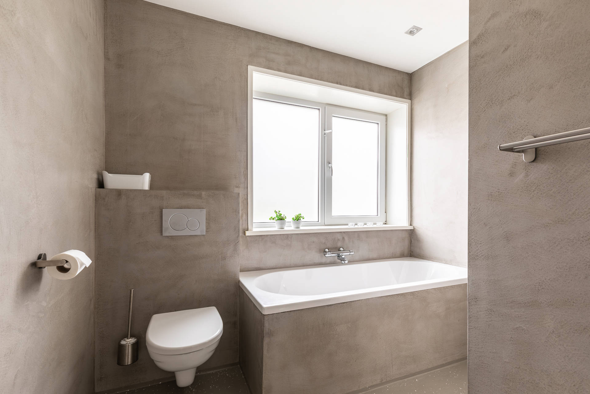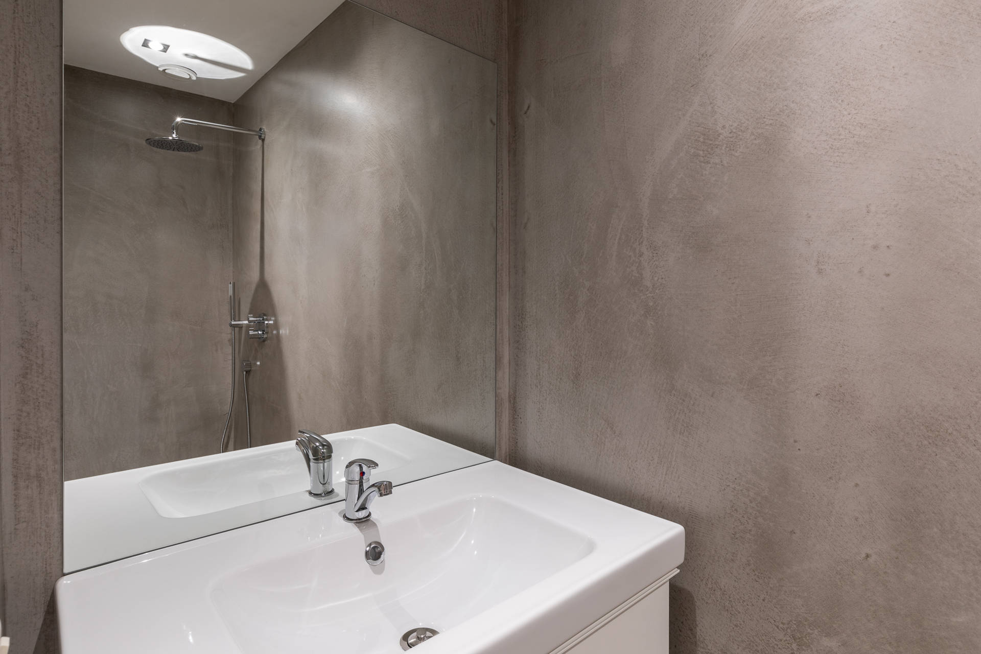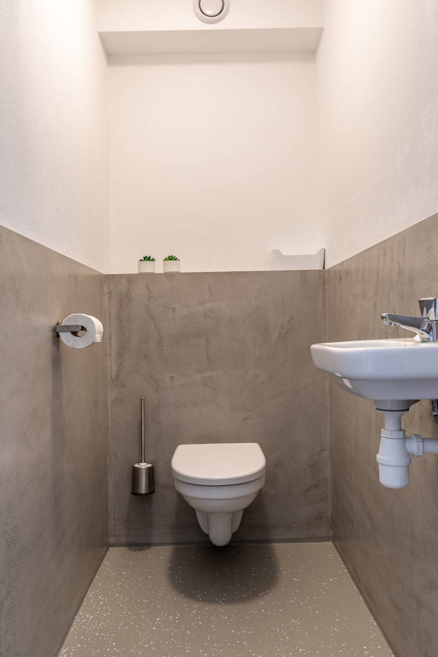 Toilette und zwei Doppelschlafzimmer mit Waschbecken.