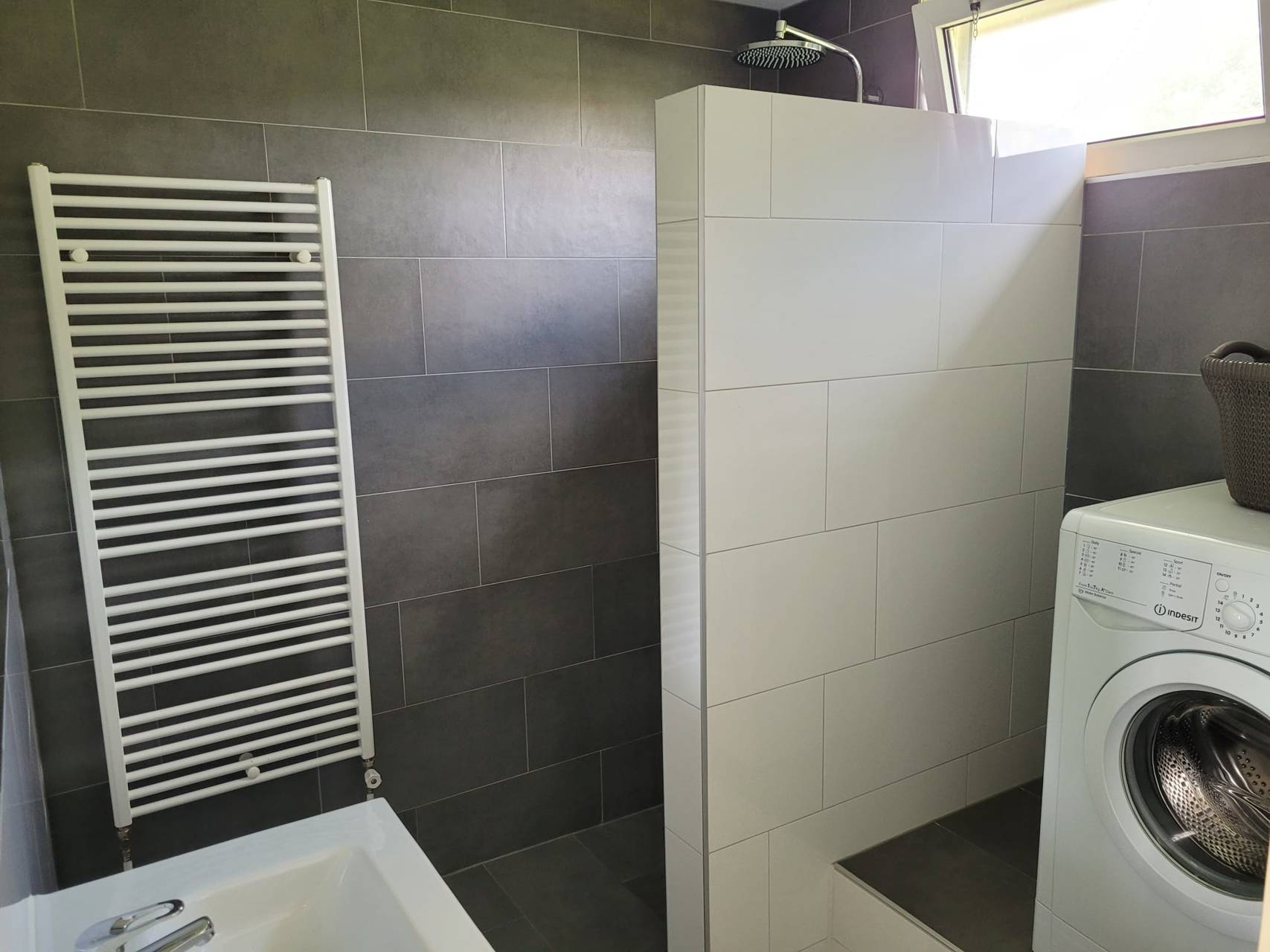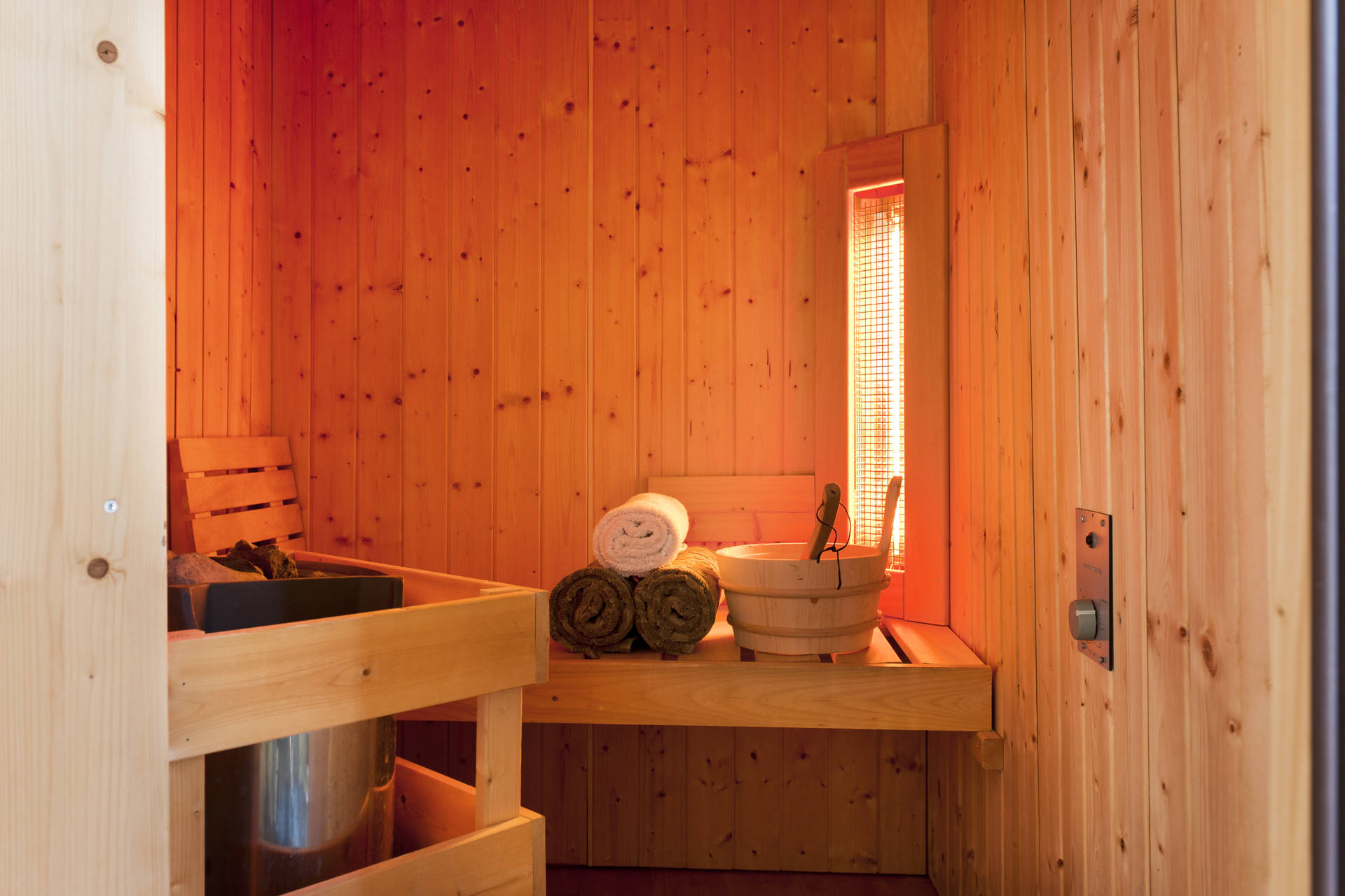 Im Erdgeschoss befindet sich ein separater Raum mit einer finnischen Ofensauna mit ua Lichttherapie und Infrarotstrahlern. Abstellraum mit Waschmaschine.