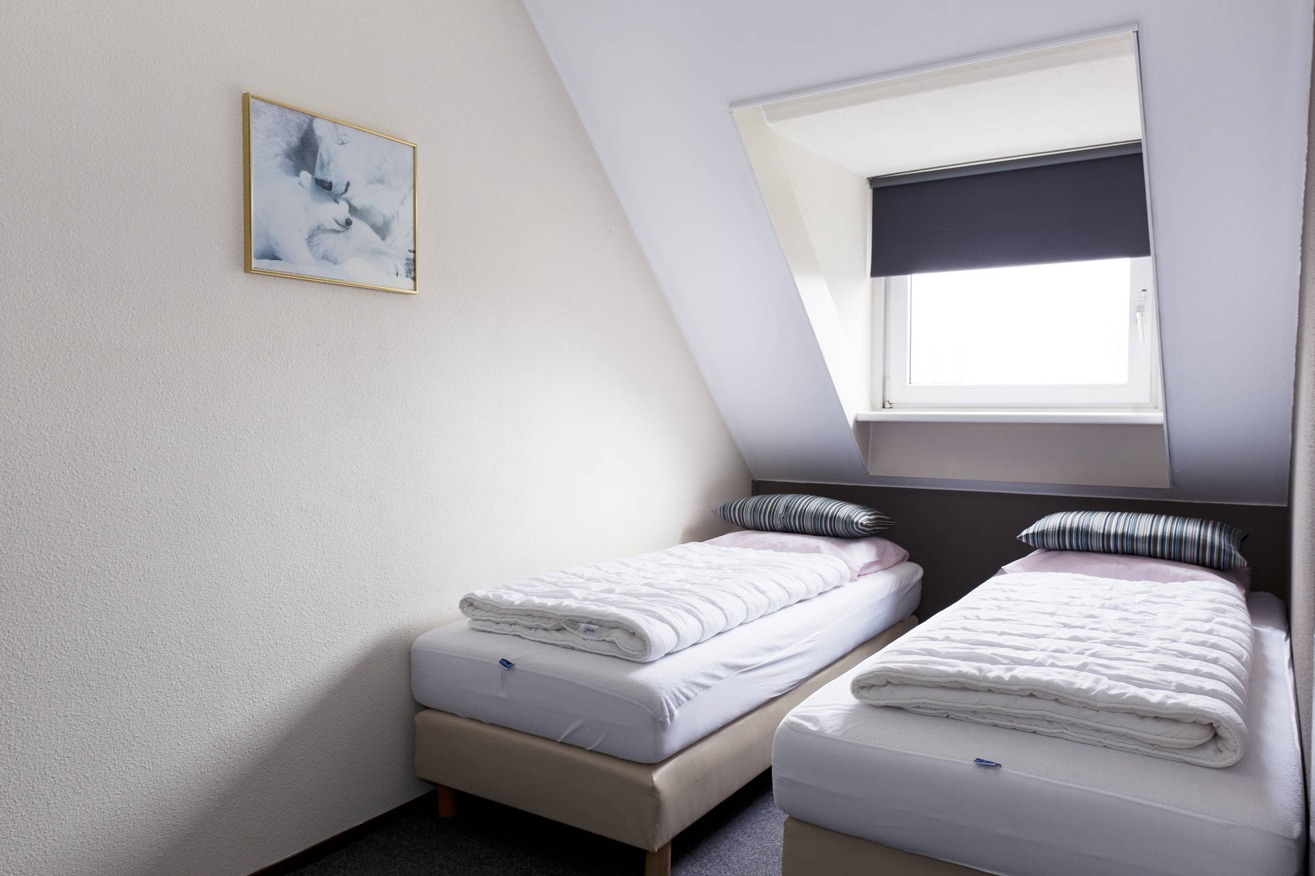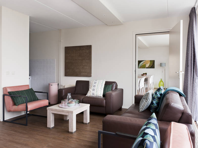 Etage: 6 Schlafzimmer, davon 4 Doppelzimmer und 2 Vierbettzimmer. Alle Betten sind Einzel-Boxspringbetten. Ebenfalls erhältlich ist ein Kinderbett und Hochstuhl. Zwei Schlafzimmer verfügen über einen Flachbild-TV. Das Haus verfügt über ein zusammenklappbares Sonnendach.