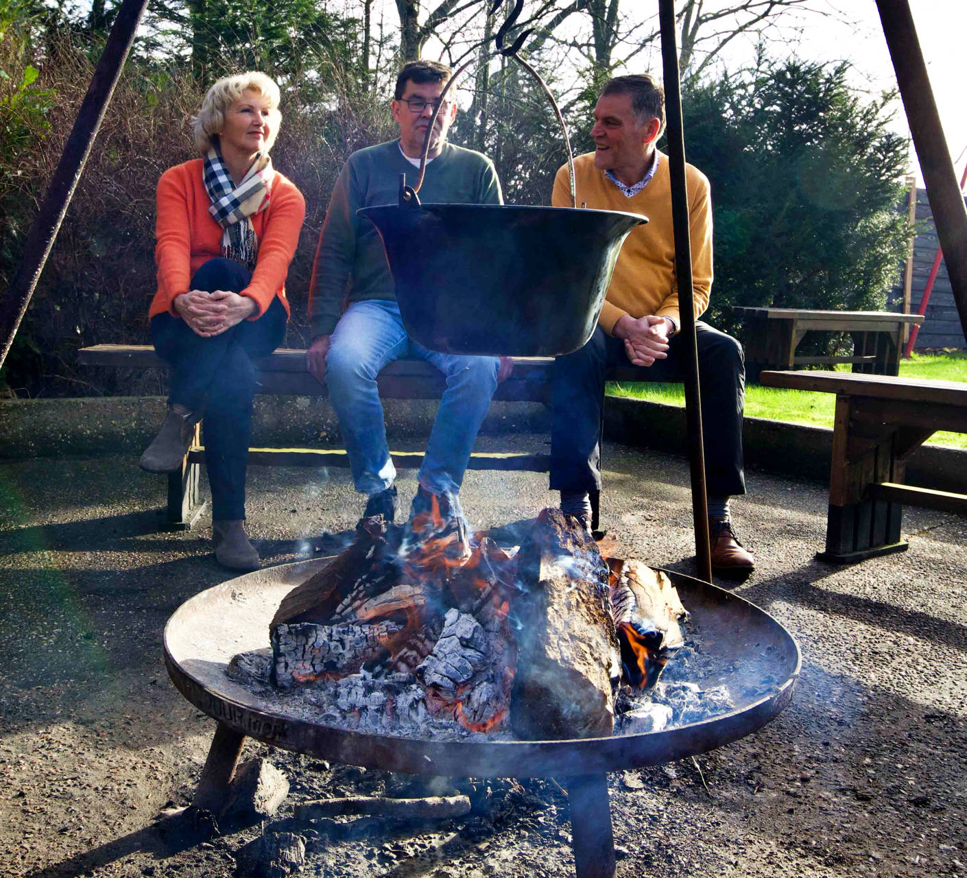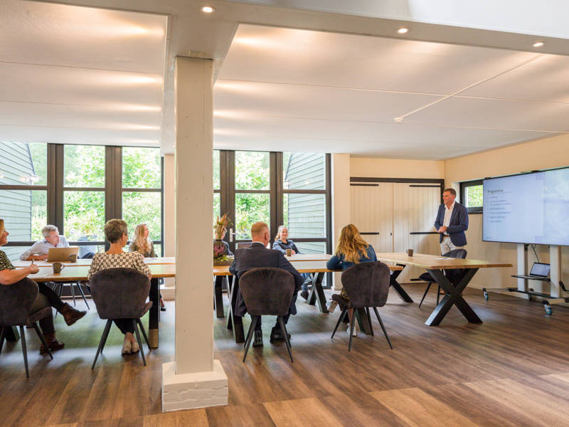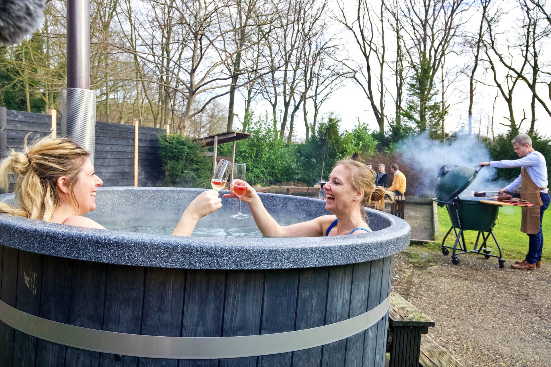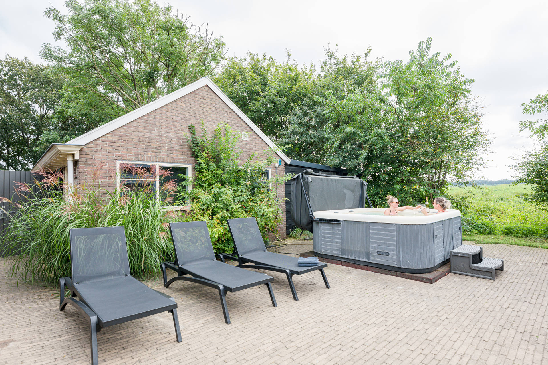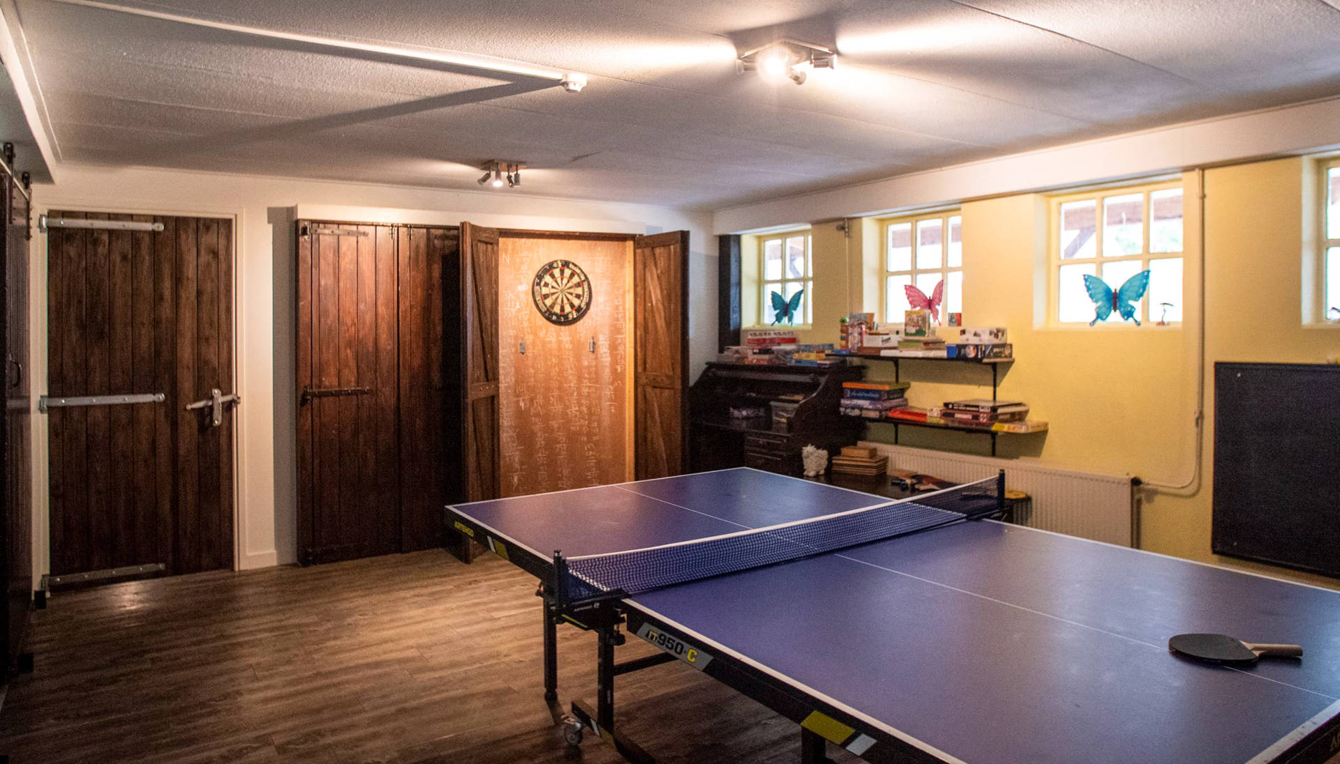 Die Profiküche ist voll ausgestattet. Im zweiten Stock des Hauses finden Sie 10 Schlafzimmer mit eigener Dusche, WC und Waschbecken. Die Zimmer sind komfortabel mit Boxspringbetten eingerichtet. Eine geräumige Sauna wurde im Untergeschoss des Hauses gebaut. Wenn Sie sich abkühlen möchten, können Sie neben der Sauna eine (kalte) Dusche nehmen oder außerhalb des geschützten Bereiches im Bädergarten. In diesem gibt es einen Whirlpool, eine geheizte Badewanne und angenehme Sitze zum Entspannen. Sie können den Bädergarten mit überdachter Terrasse während des ganzen Jahres nutzen. In einem abgetrennten Spielzimmer befinden sich ausreichend Spiele, Dartboards sowie eine Orgel. In diesem Raum gibt es auch einen Fernseher. Auf den Terrassen stehen komfortable Möbel. Für Spiel und Sport gibt es ein großes Trampolin, ein Spielfeld mit Fußballtoren, ein Volleyballnetz und ein Petanque-Feld. Eine besondere offene Feuerstelle wurde im Garten angelegt.