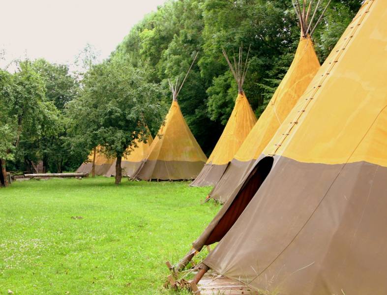 Das Tipi Dorf verfügt über Zelte für jeweils 10 Personen (7 x 6 Meter). Dadurch eignet sich das Tipi Dorf sehr gut für eine größere Gruppe. Mit selbst mitgebrachten Matten und Schlafsäcken übernachten die Gruppen in robusten Indianerzelten.