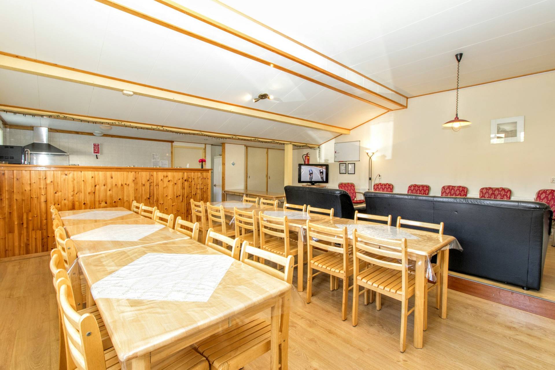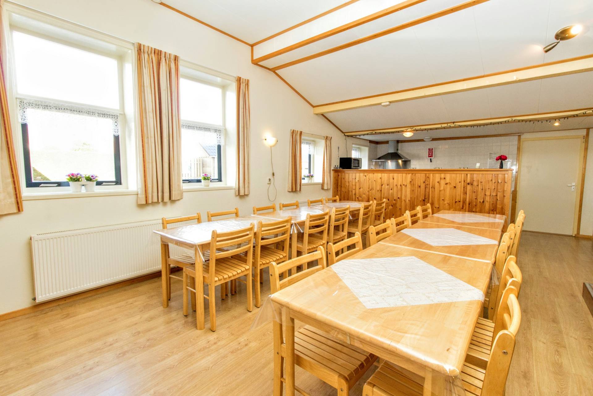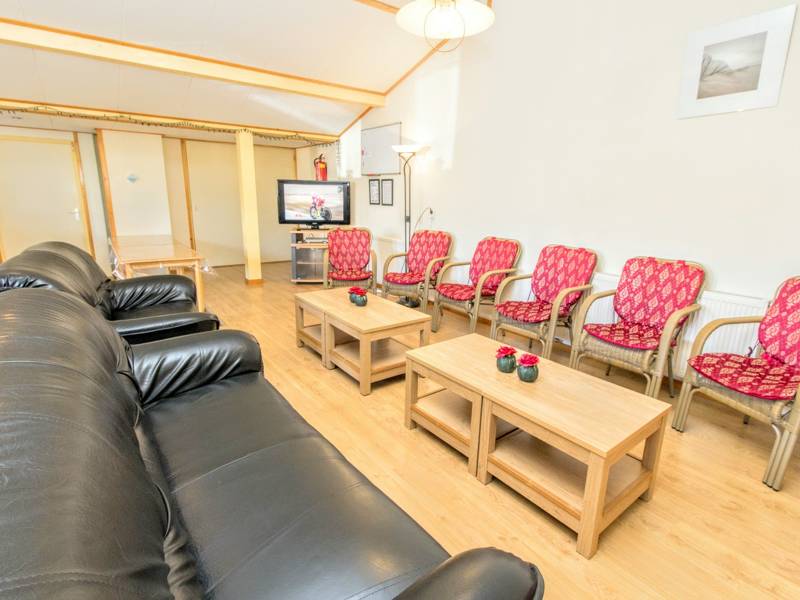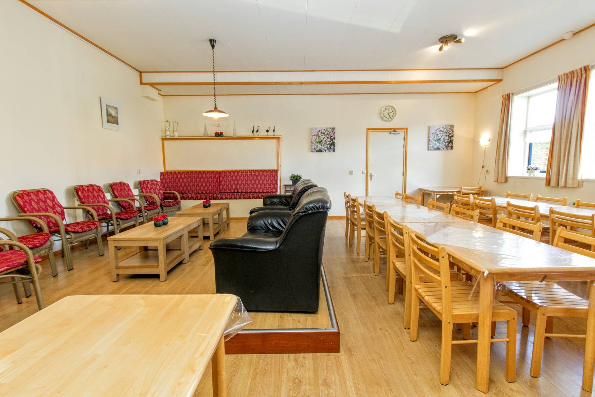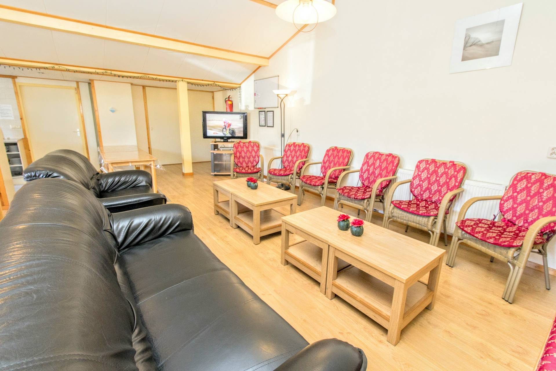 De groepsruimte is een ruime gezellige woonkamer met daar in een zithoek, een eethoek en een volledig ingerichte keuken. De zithoek is voorzien van verschillende banken, rotanstoelen en een tv aangesloten op de kabel en een dvd-speler. Er zijn verschillende gezelschapsspellen aanwezig.