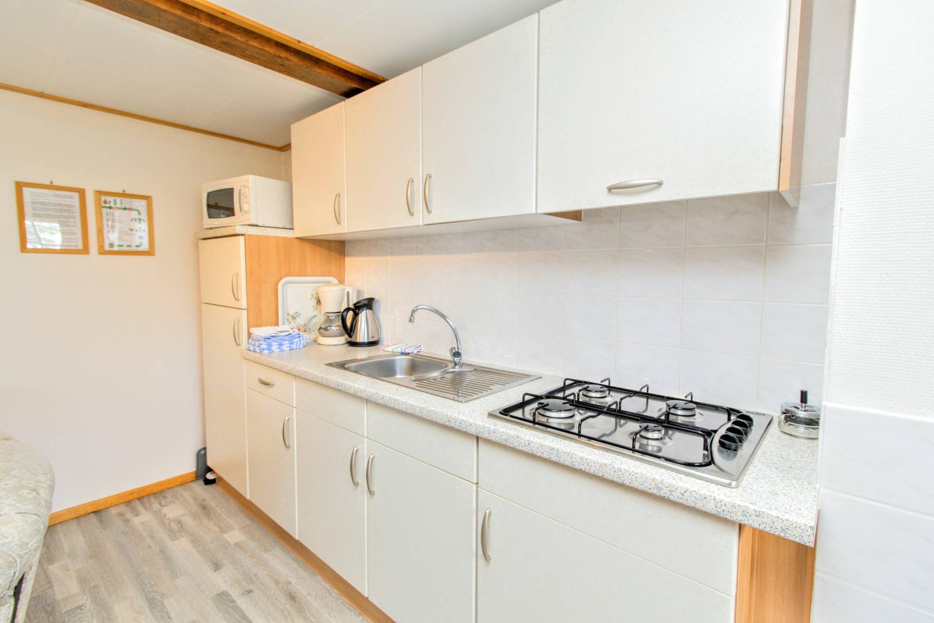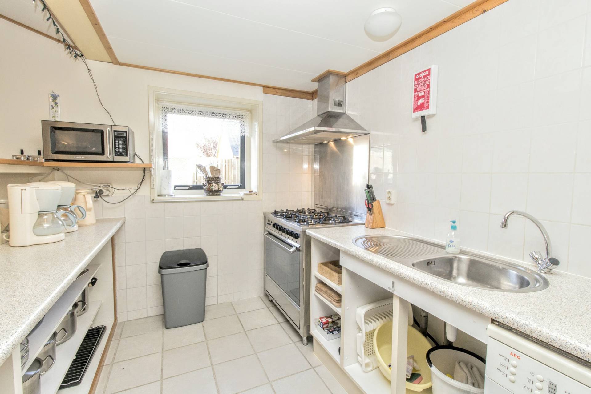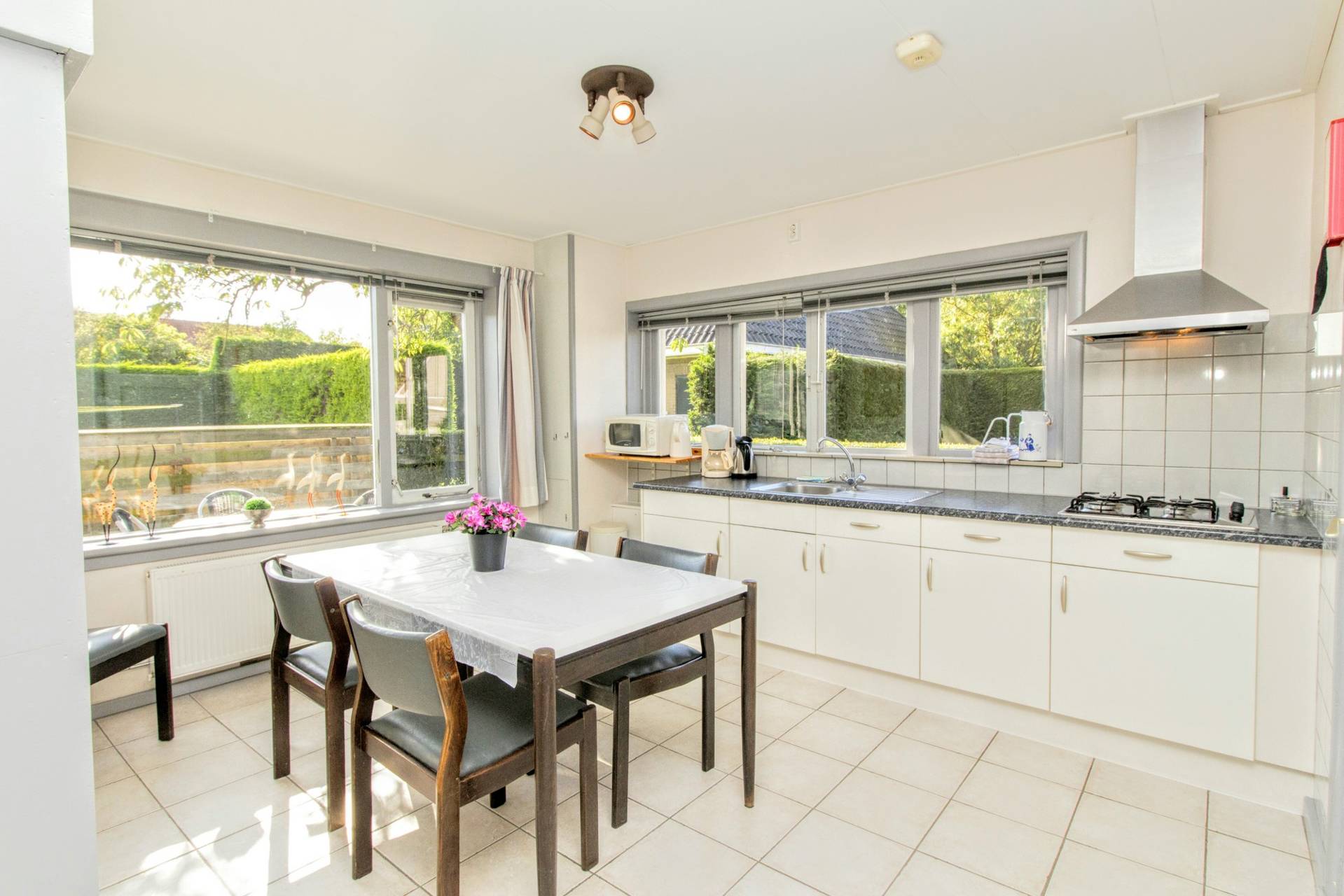 In de eethoek staan voldoende stoelen en tafels om gezellig samen te kunnen eten. Er is een volledig ingerichte open keuken met daarin voldoende pannen en attributen om te koken en te eten.
