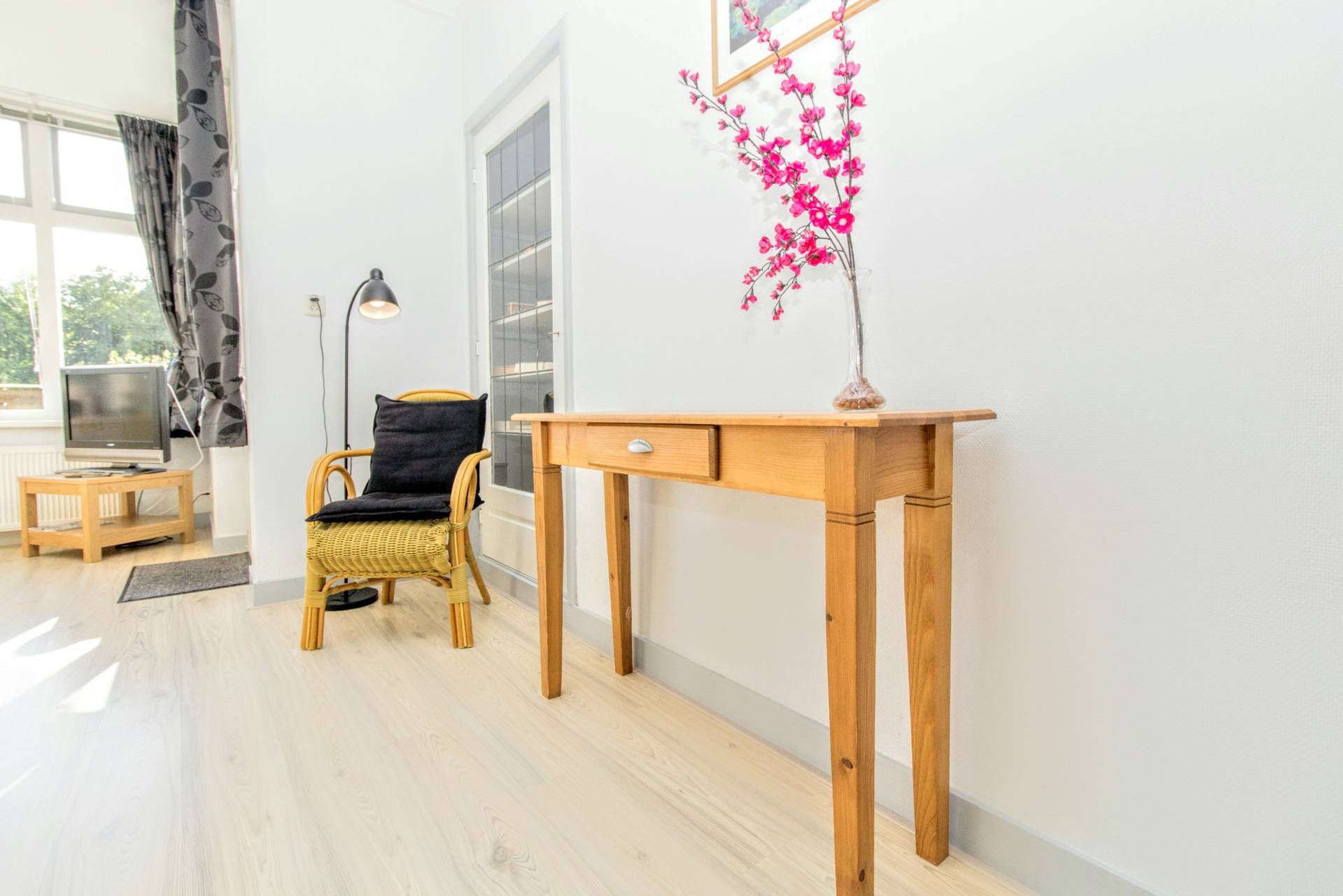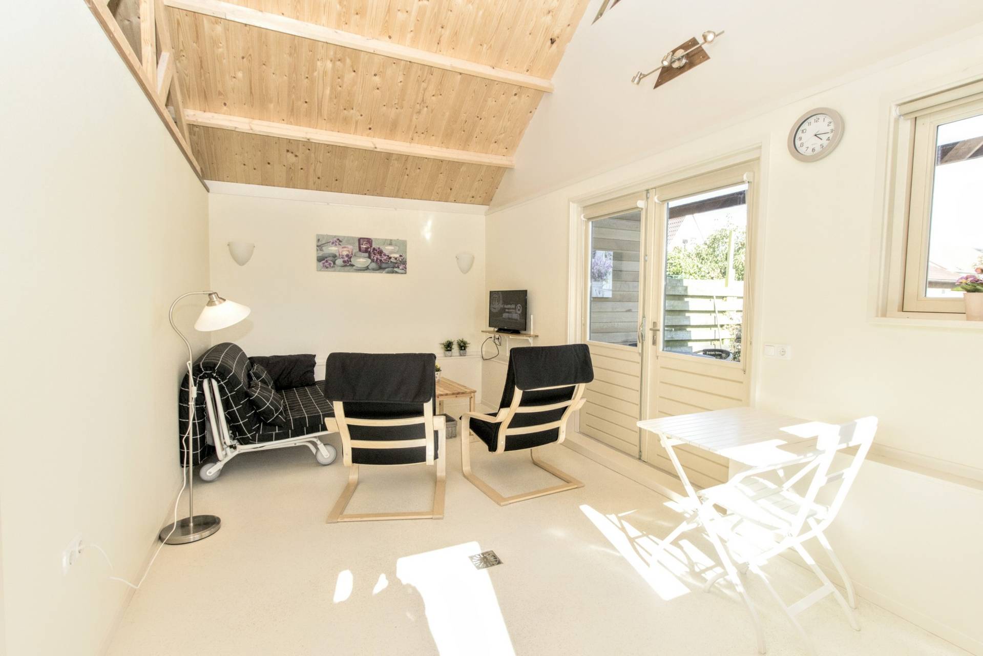 De appartementen hebben een woonkamer, slaapkamer en douche, toilet en wastafel. Er zijn 2 appartementen met een slaapkamer boven. Ieder appartement heeft een eigen ingang en een terras. De achterdeur van elk appartement komt uit op de speelruimte.