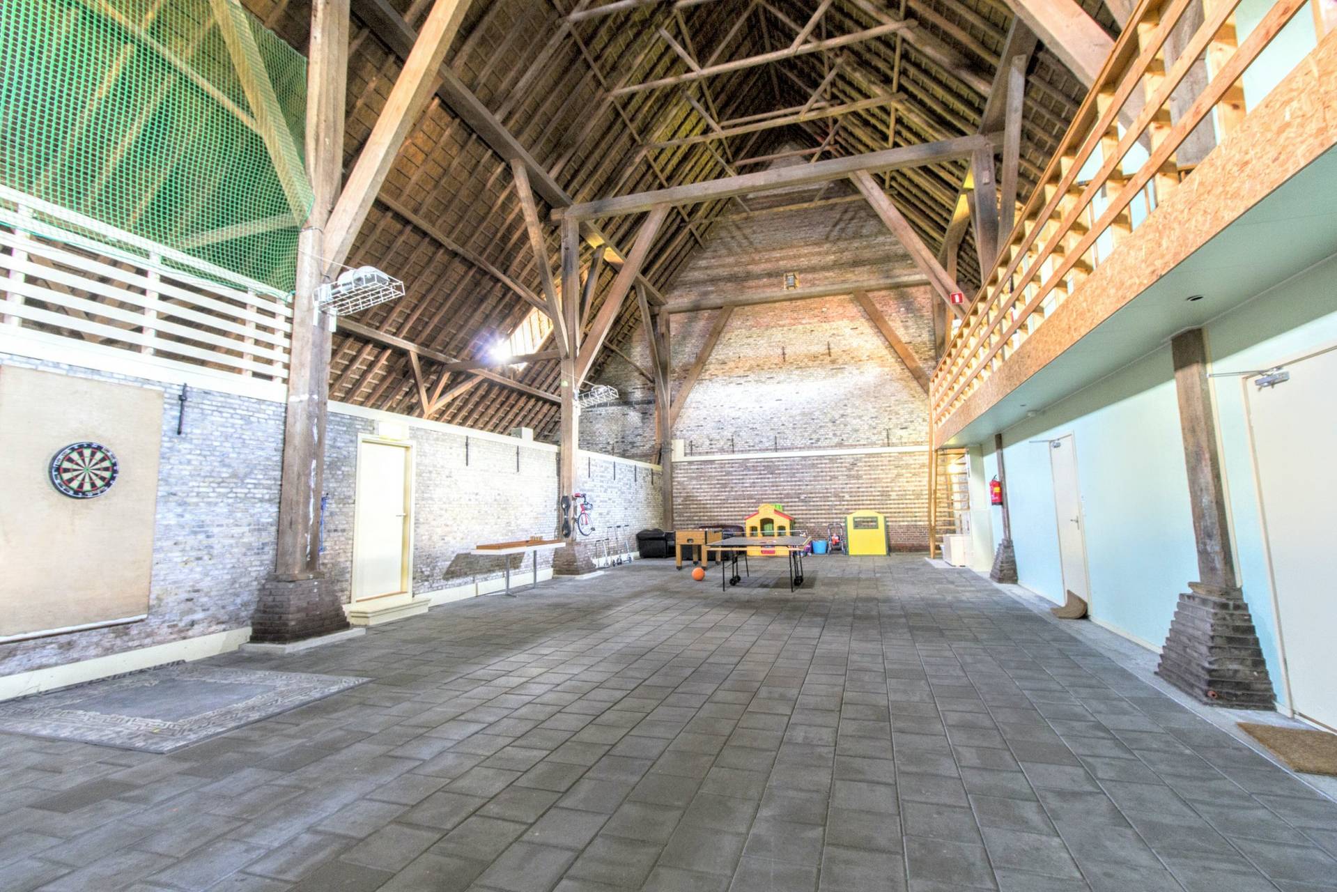 In de speelruimte hangt een dartbord en een basketbalnet, er staat een tafeltennistafel, een tafelvoetbal, sjoelbak, poppenkast + poppen en een speelhuisje.