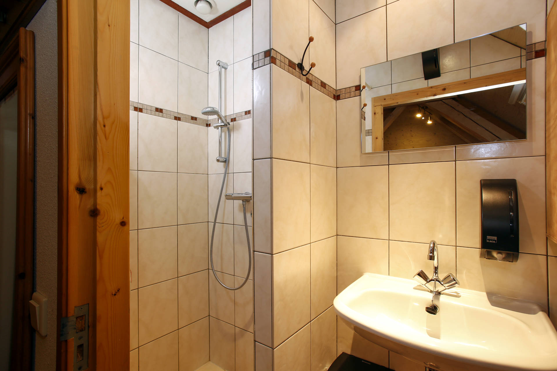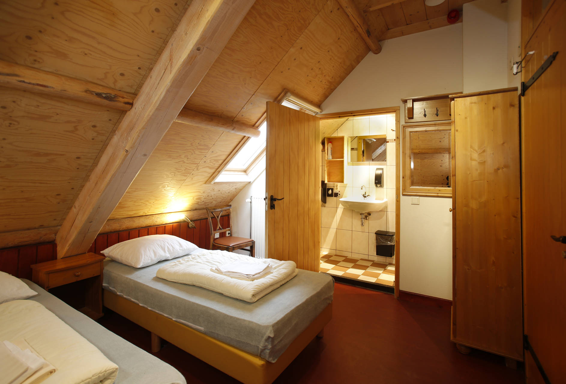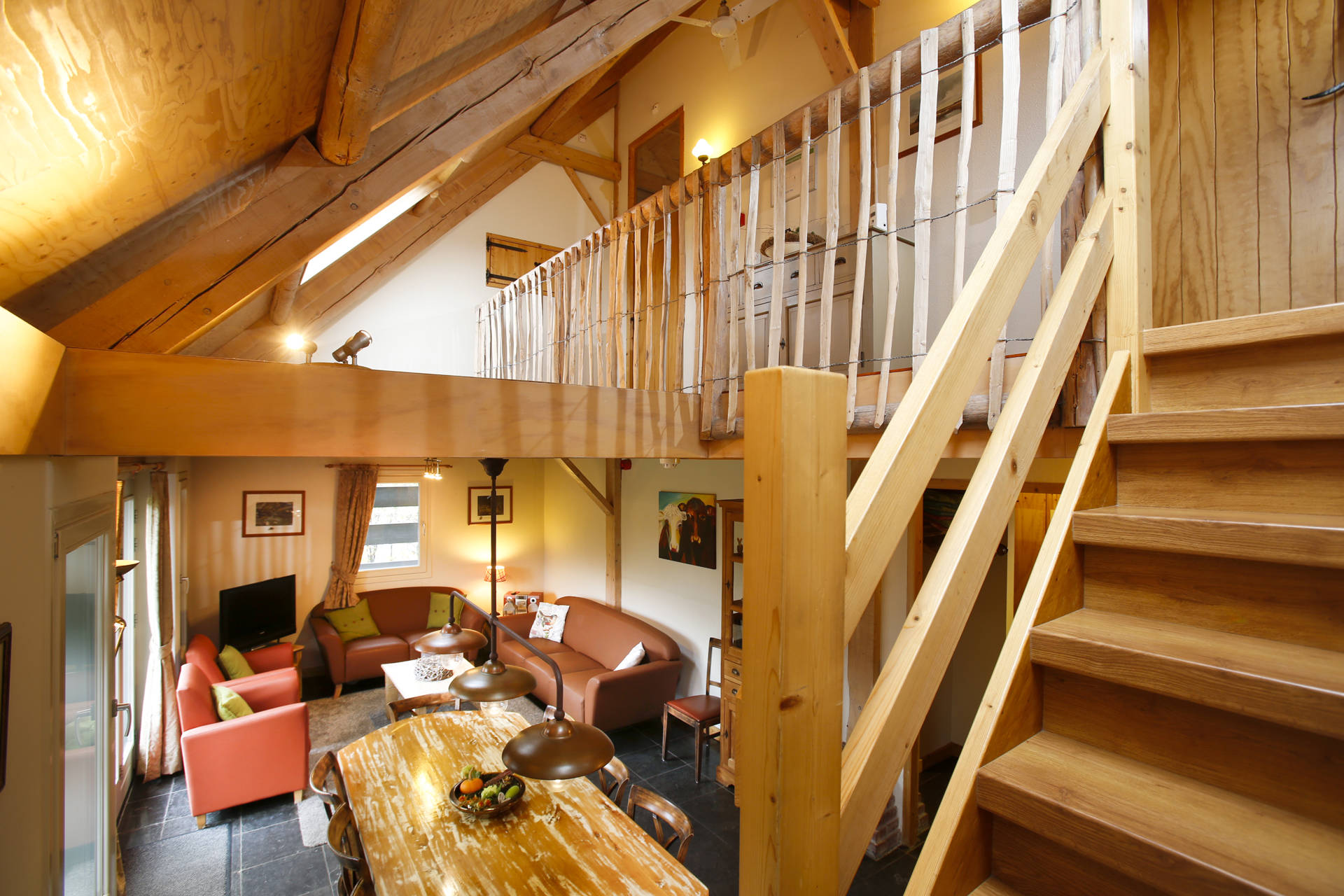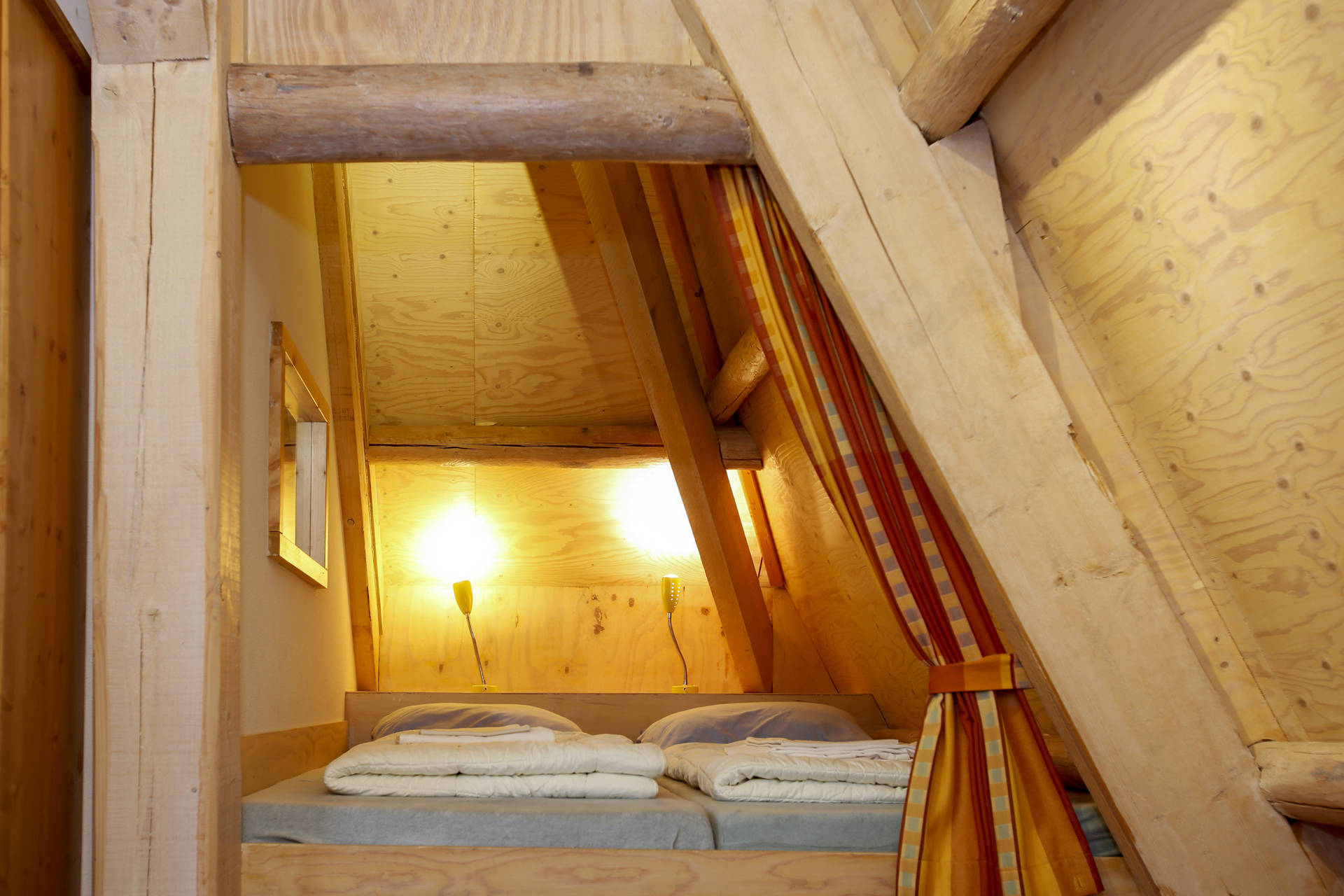· 2 slaapkamers op de verdieping met elk een eigen badkamer, in elke kamer is plek voor 4 personen, in de bedstee 2 en in de gewone bedden ook 2