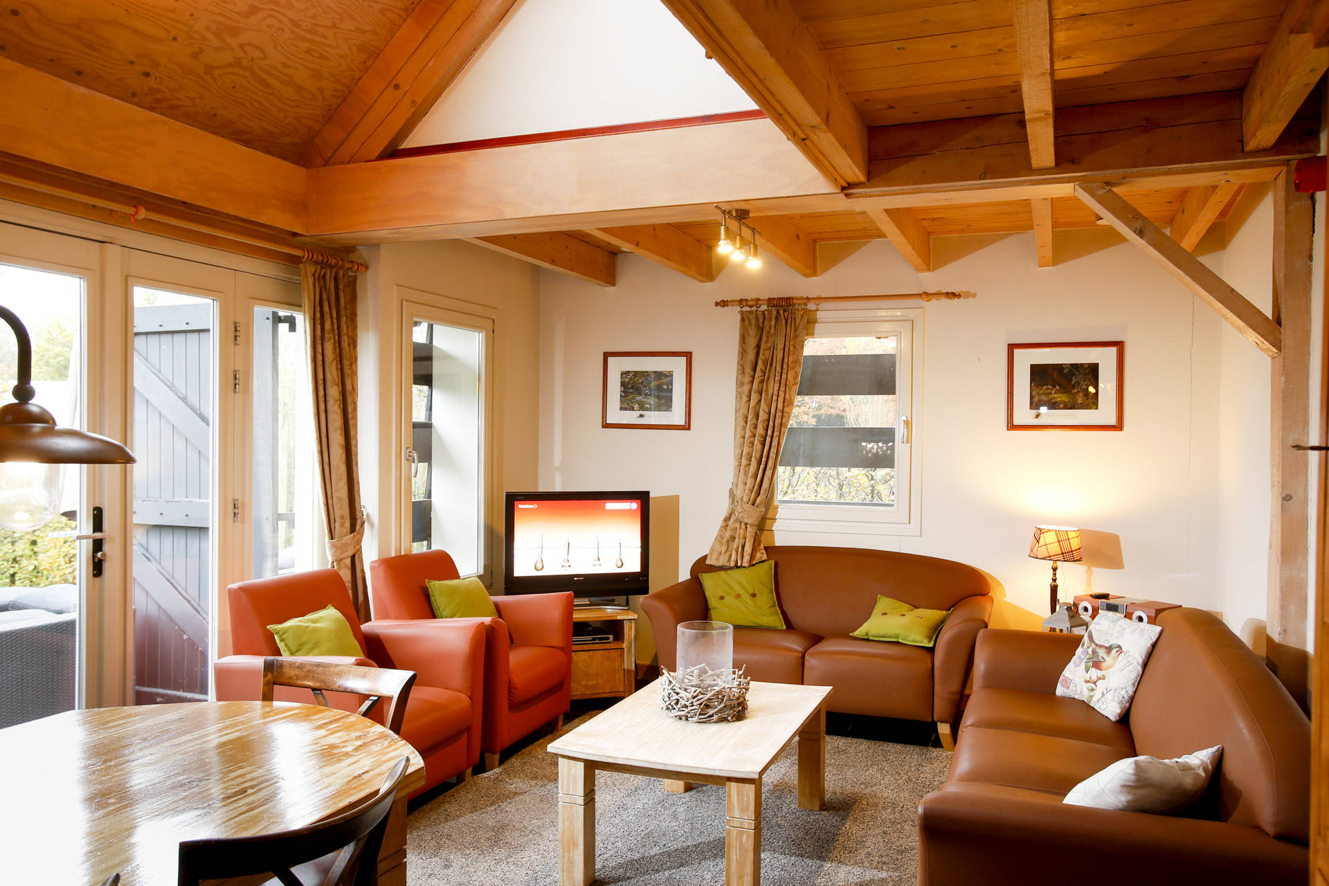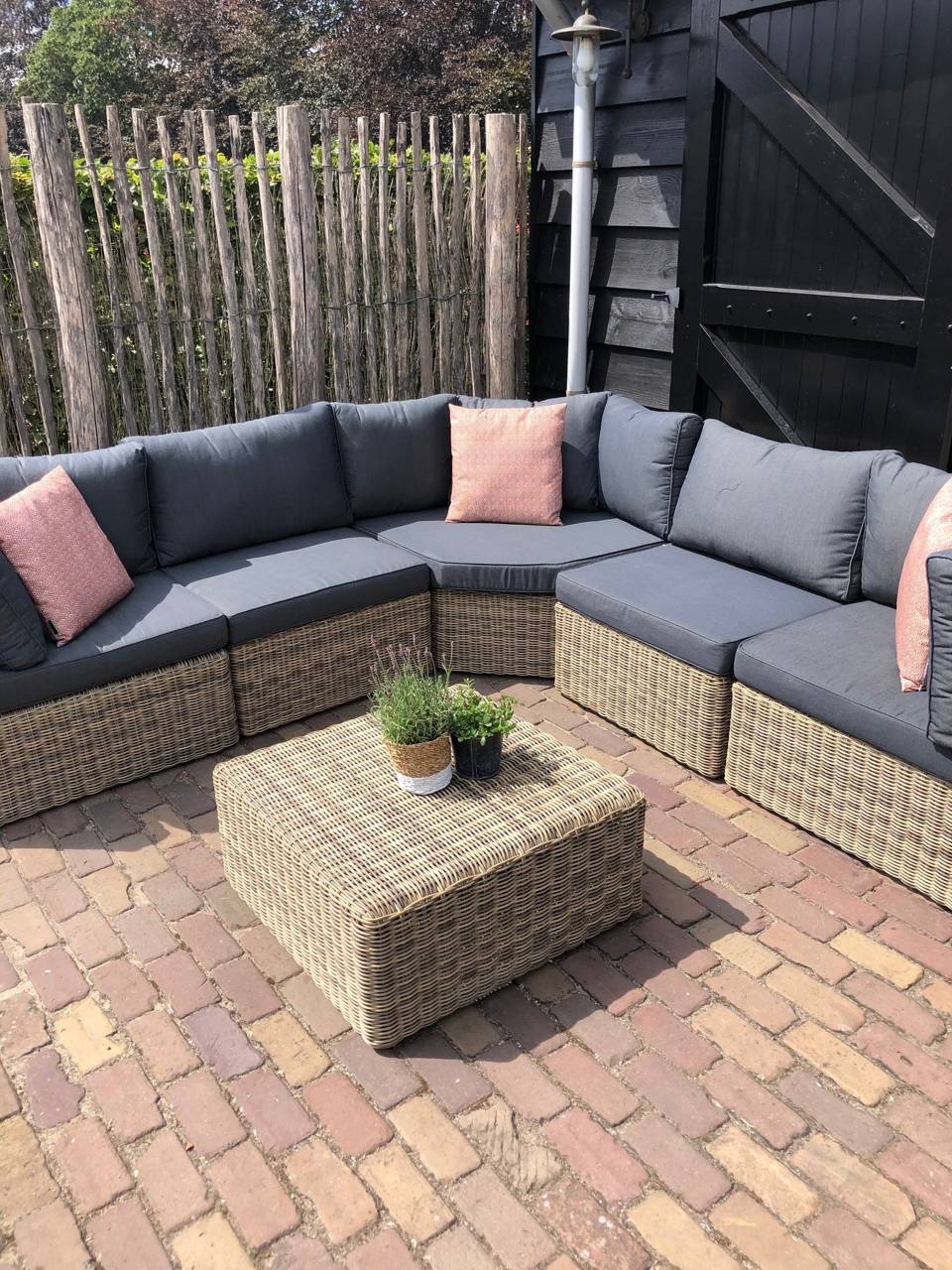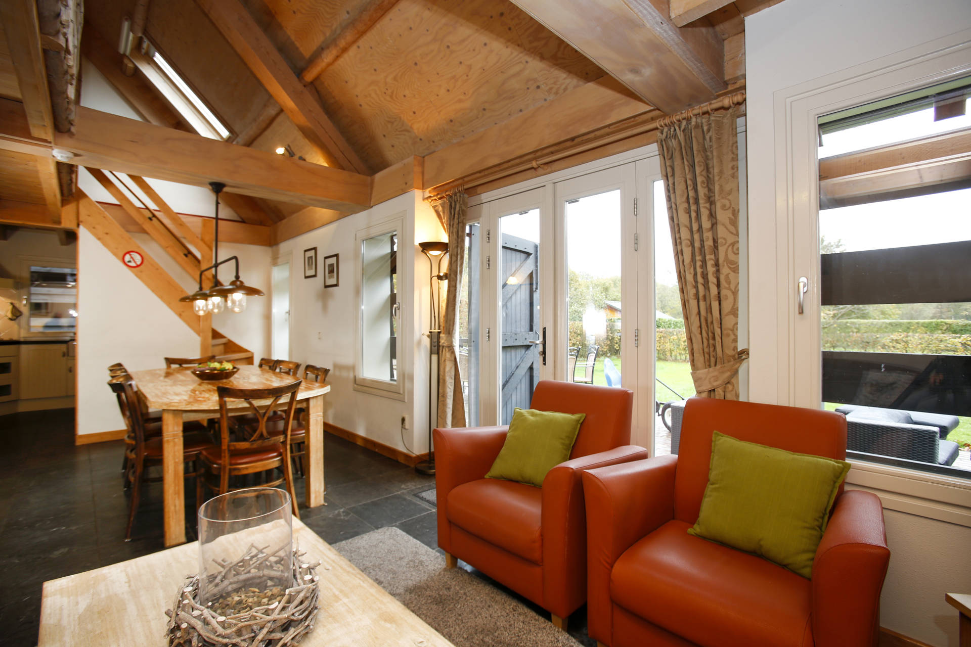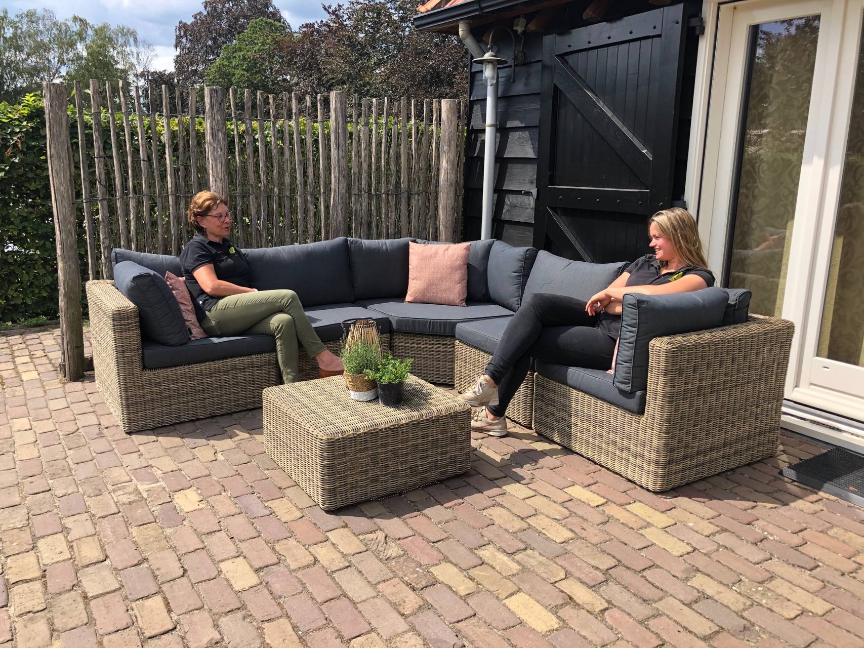 · Terras met ligstoelen, picknickbank en loungemeubel