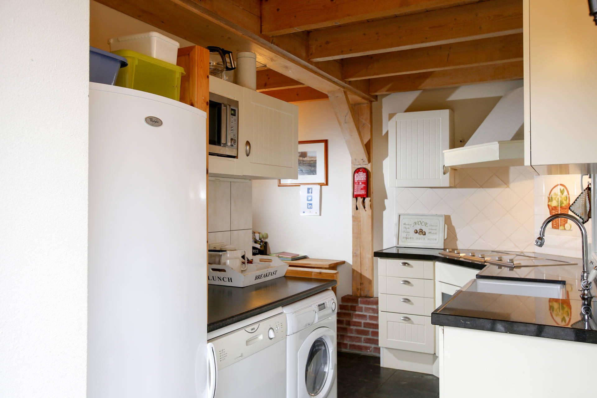 · Keuken met 6-pitskookplaat en combimagnetron, vaatwasser, koffiezetapparaat, waterkoker, wasmachine en droger