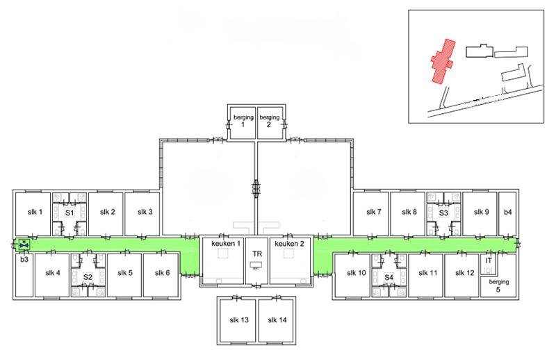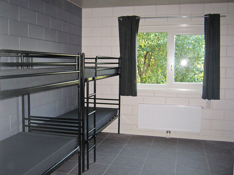 - twaalf slaapkamers (eenpersoonsbedden en stapelbedden met grote kasten). Aanvullend te huur zijn er twee extra kamers voor acht personen. Beddengoed (slaapzak, dekbed of dekens, hoeslaken en kussen) dient zelf meegebracht te worden.