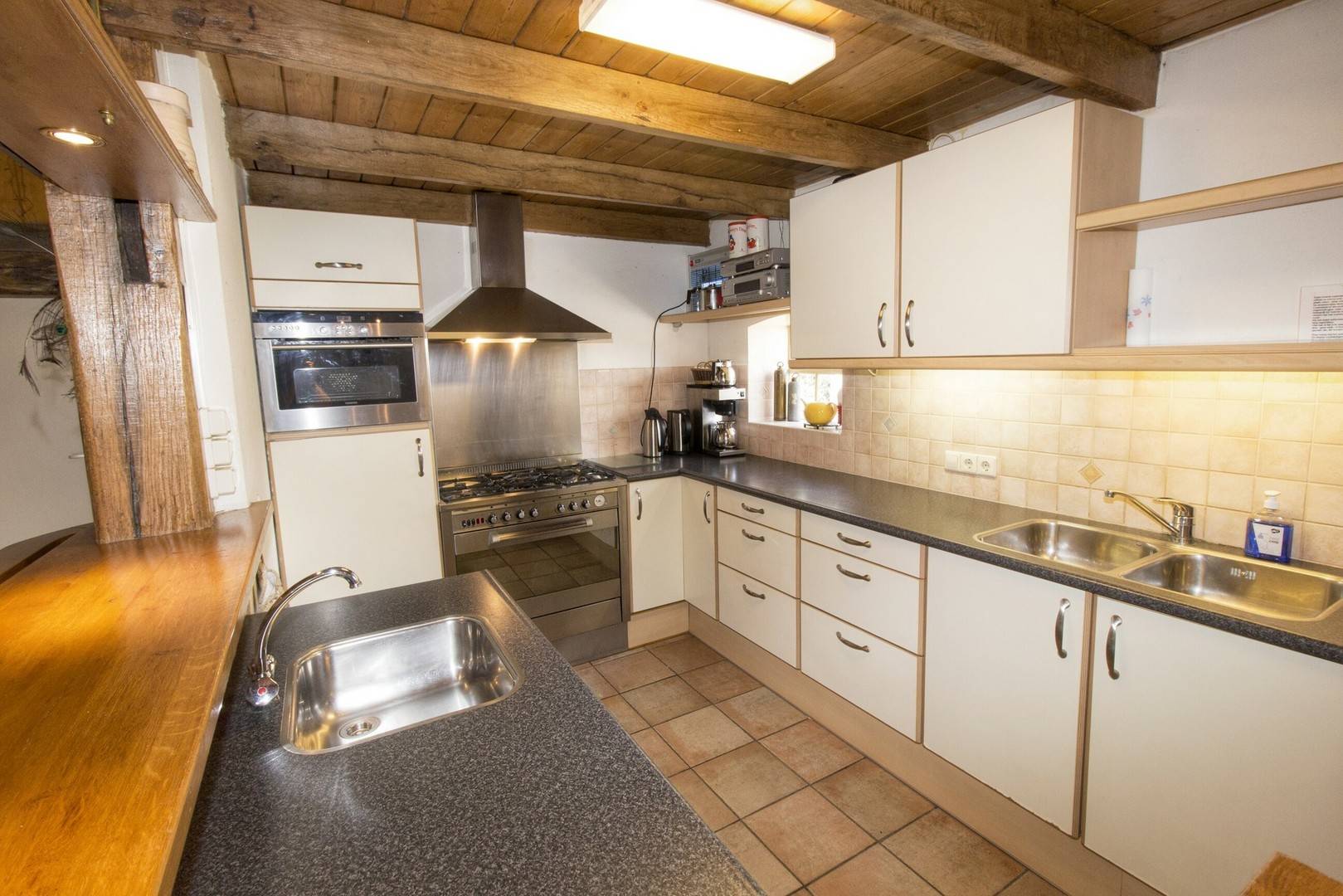 Beneden vindt u een volledig uitgeruste keuken voor grote groepen, voorzien van onder andere:
