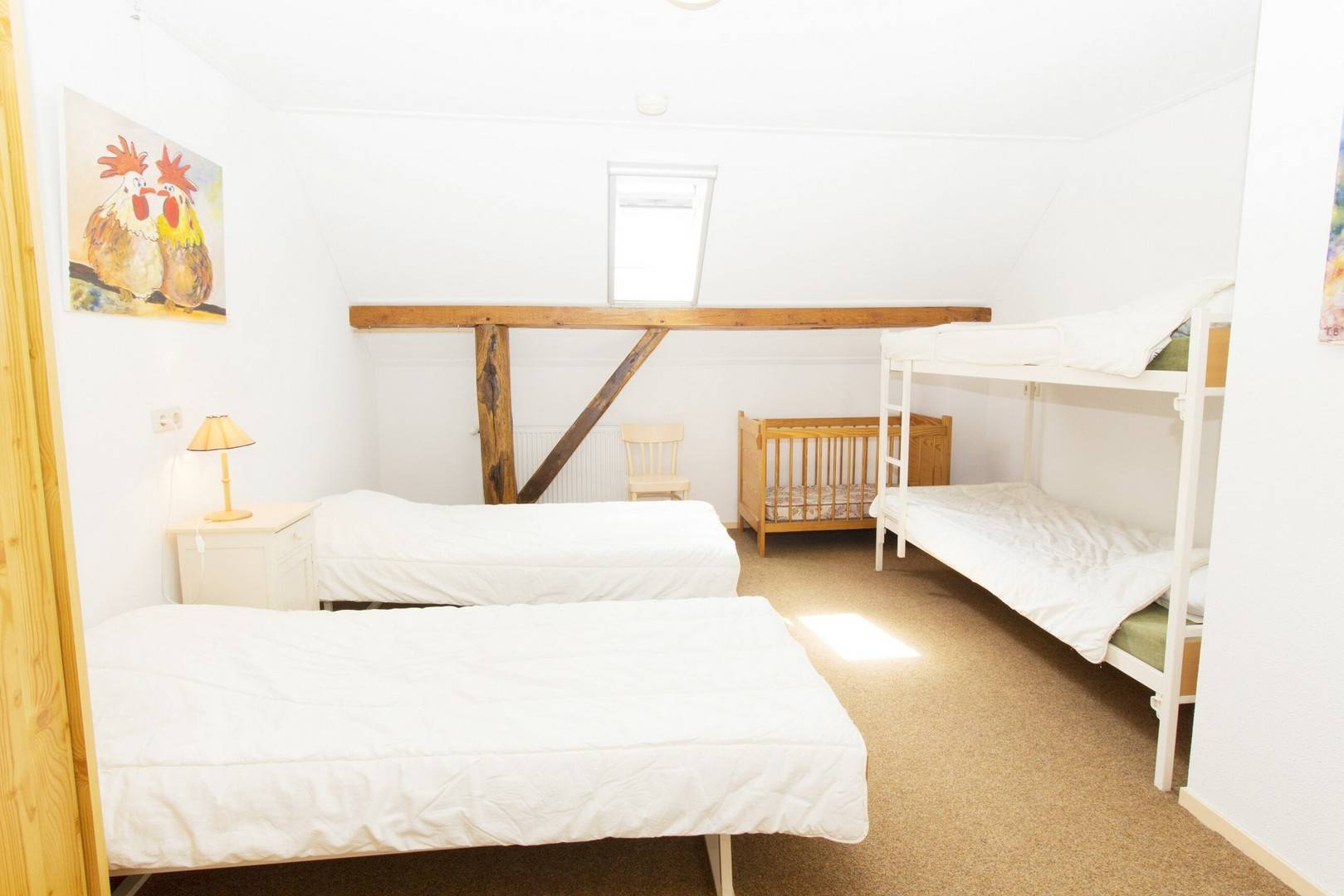 De accommodatie is voorzien van gevel- en vloerverwarming. Onder de hooiberg is een knusse zitplek met uitzicht over de weiden met koeien. Zitten in de zon kan op ons gezellige terras. Kinderen kunnen zich uitleven in de tuin, voetballen op het veld, heksensoep maken in het buitenkeukentje of tekenen op het grote krijtbord.