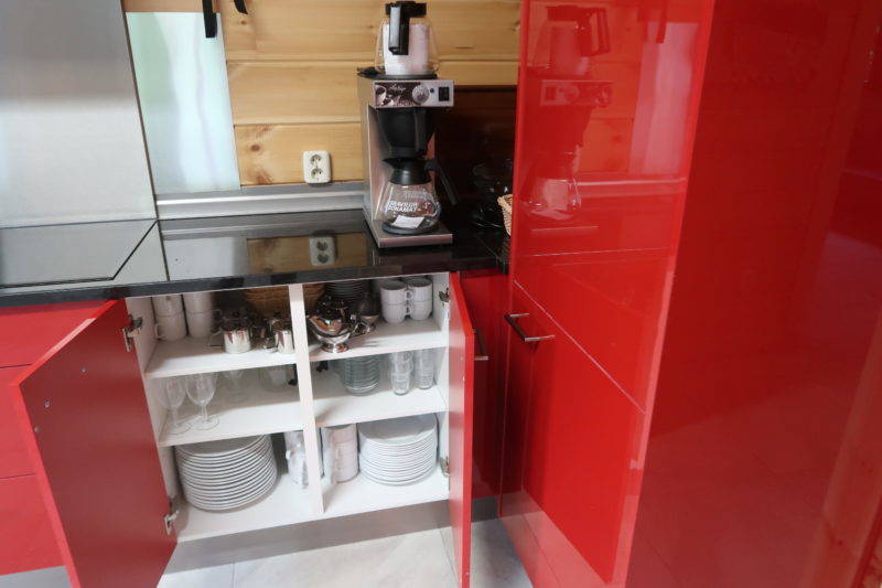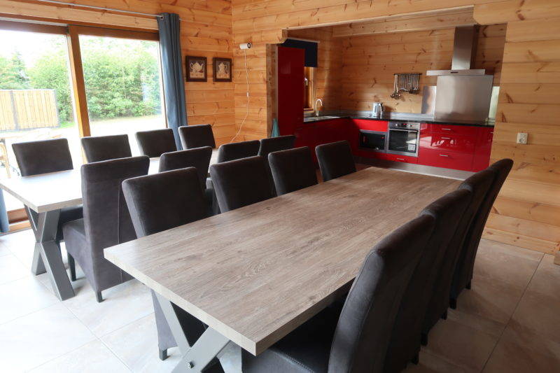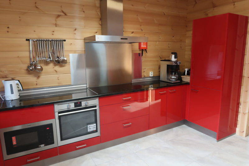 De keuken is volledig ingericht met aparte ruime koelkast, vriezer, oven, magnetron, inductie kookplaat, vaatwasser, waterkoker, koffiezetapparaat met dubbele kannen, keukengerei (bestek/glazen/pannen/kannen etc).Kortom een keuken die zeker geschikt is voor groepen van 16 personen.