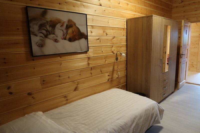Op de begane vloer vindt u een ruime hal /inkomstruimte. Daarnaast is er een ruime slaapkamer met een dubbele boxspring 210×180 en enkele boxspring 210×90. In de slaapkamer is er ook een hang/opslagkast en twee stoelen aanwezig.
