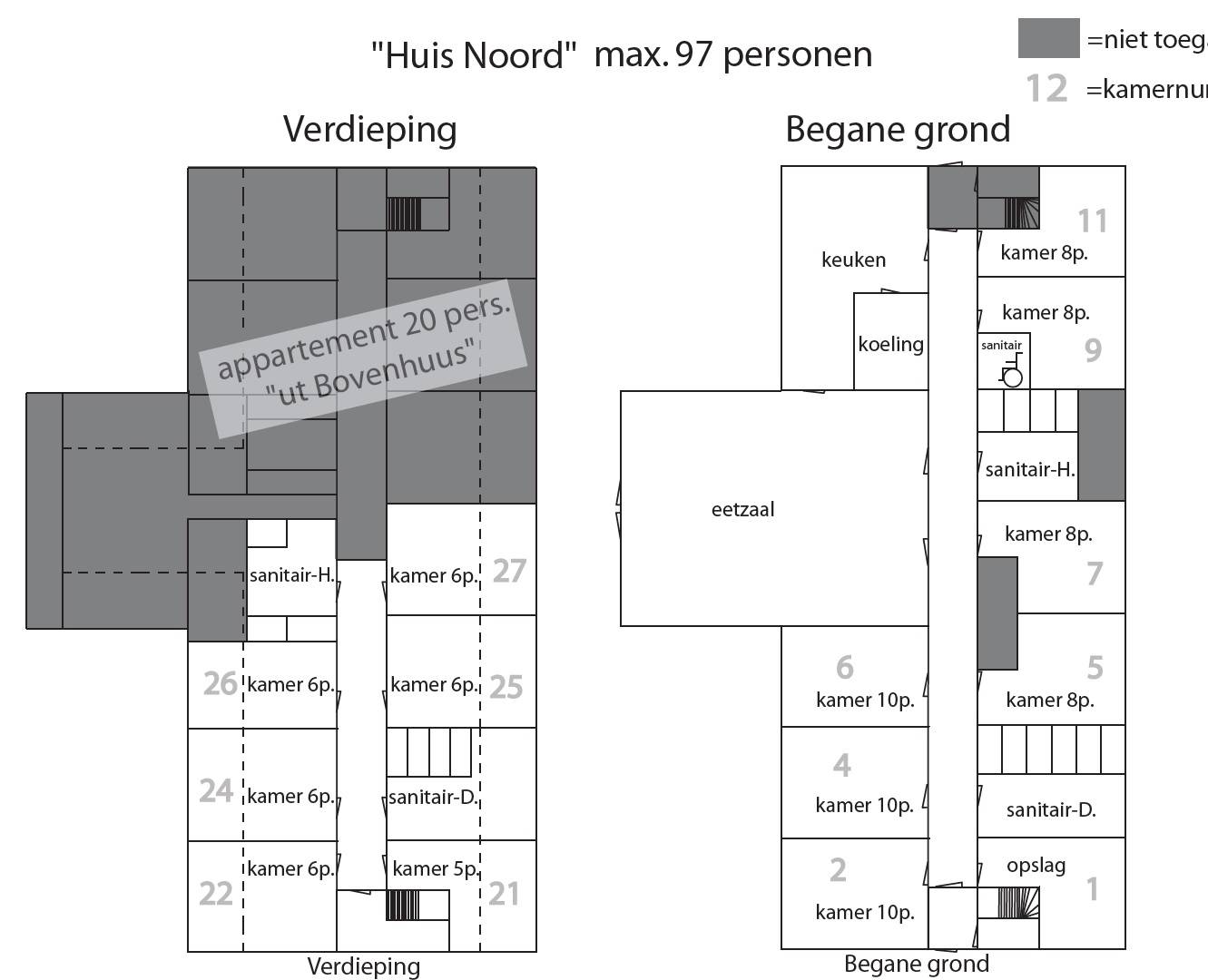 Alle bedden zijn voorzien van een matras met hoeslaken en kussen. De gasten dienen zelf een hoeslaken, kussensloop, slaapzak of dekbed mee te nemen
