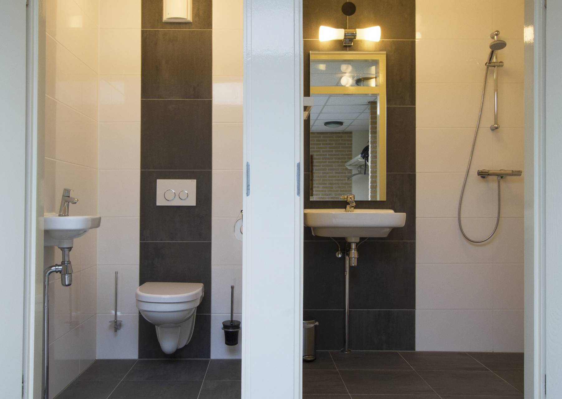 In totaal zijn er 6 badkamers. Drie ervan zijn op de grote 4-persoon slaapkamers, ofwel privé sanitair. Verder zijn er nog 3 badkamers en toiletten. In één van de badkamers is een ligbad aanwezig. Drie van de 6 badkamers zijn aangepast voor rolstoelgebruikers.