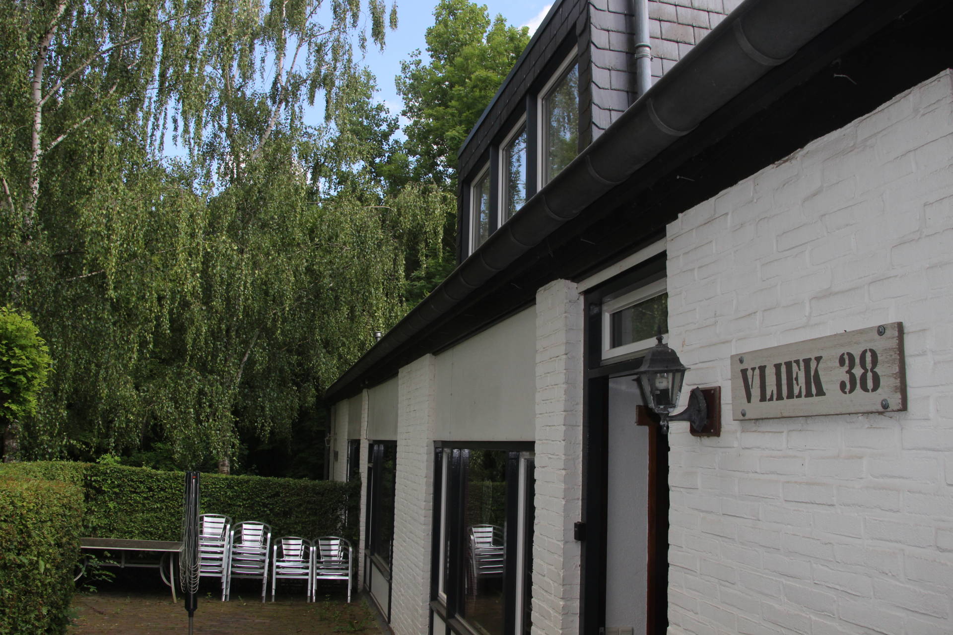 De voorkant van het groepsverblijf.De tuin met terrasmeubels. Een natuurrijke omgeving.De sfeervol ingerichte gezamenlijke leefruimte.Een ruime kookgelegenheid.+21 foto's