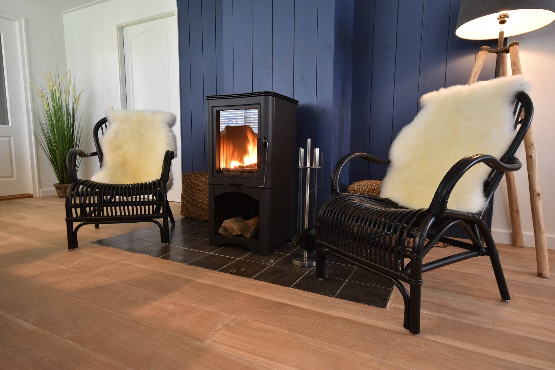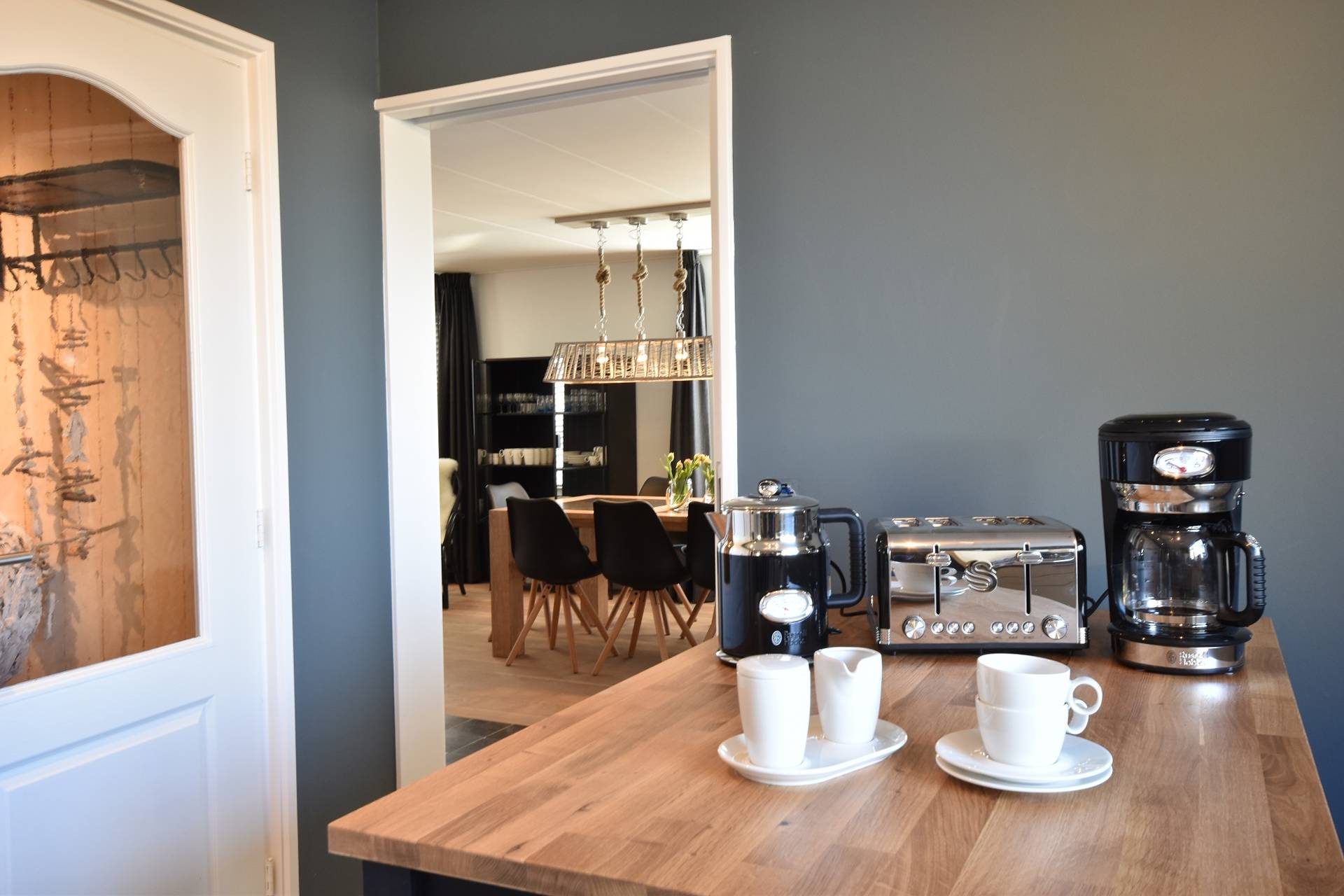 In de riante woonkamer heeft u bij de zithoek een grote Smart TV en een gezellige houthaard. De luxe compleet ingerichte keuken is van alle gemakken voorzien, waaronder een magnetron, oven en vaatwasser. Naast het traditionele filter koffiezetapparaat heeft u ook een Nespresso koffiemachine.